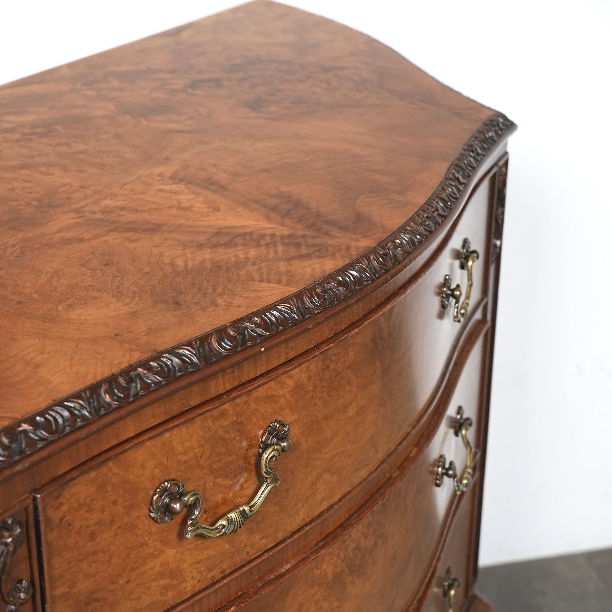 良質なウォルナットのユニークで美しい杢目が印象的で、主張しすぎない上質なデザインの中に、フロントの優雅な曲線美や内部の丁寧な作り込みが光ります。