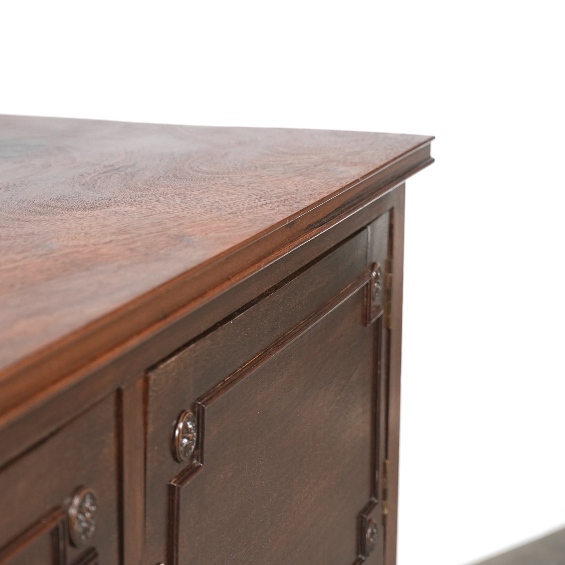 背立や扉に施されたさり気ない装飾やクラシカルな金具、スリムな脚部のラインなど、英国らしい美学も随所から感じ取って頂けます。