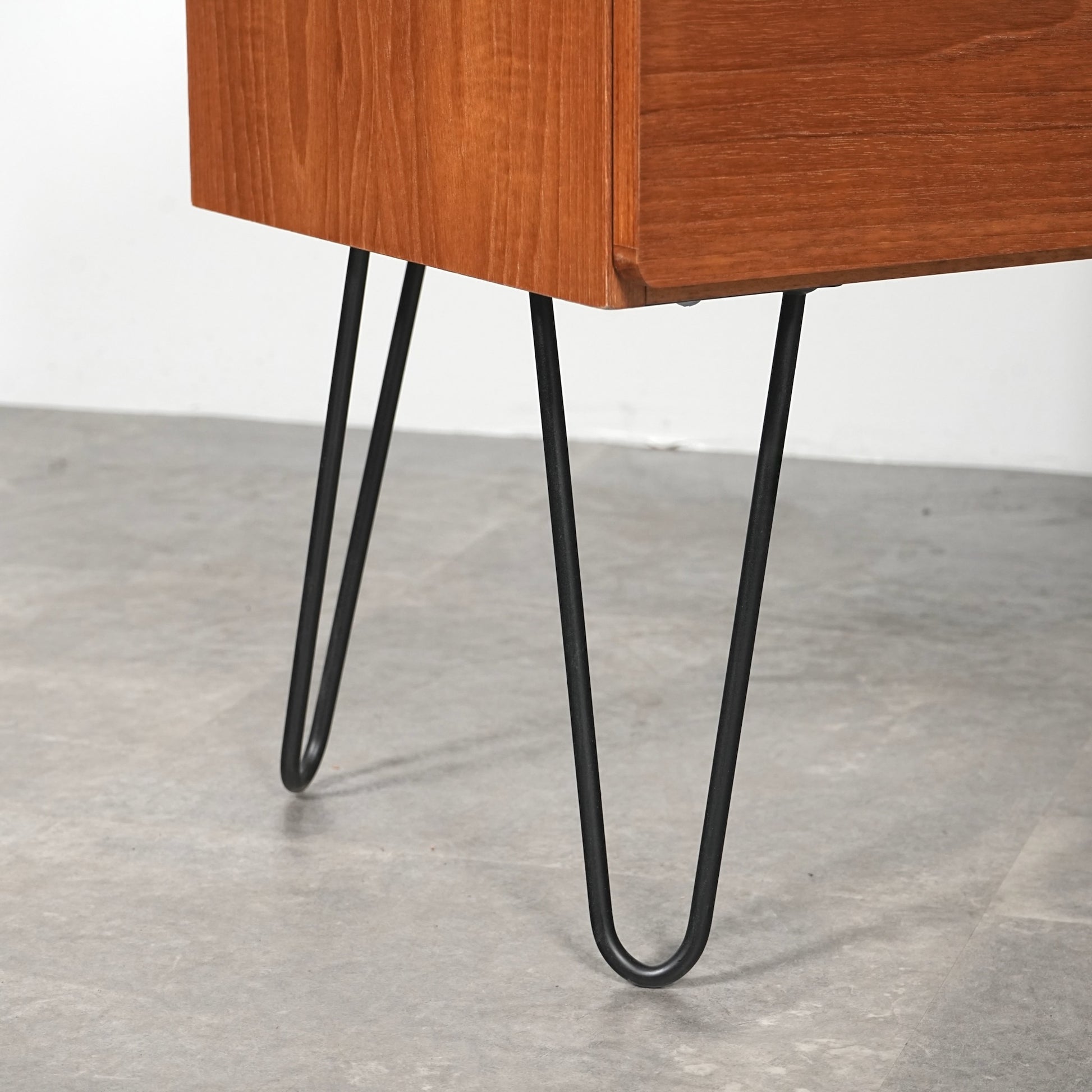 脚部のヘアピンカスタムによって床からの抜け感が生まれることで圧迫感も少なく、リビングやベッドルームなど、さまざまな空間に自然と馴染む佇まいです。
