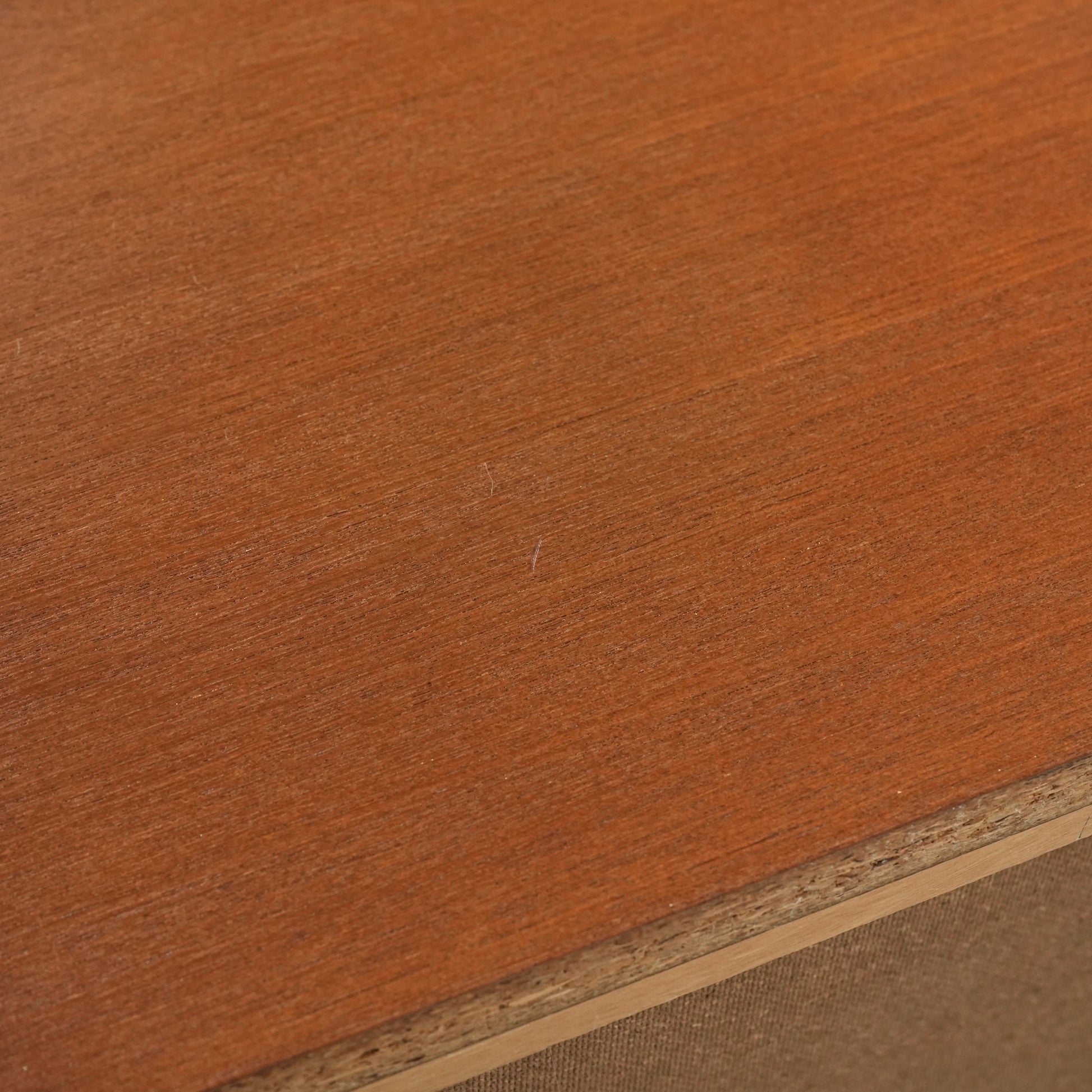 温かみのあるチーク材の表情と、すっきりとした直線的なフォルムが印象的な一台です。