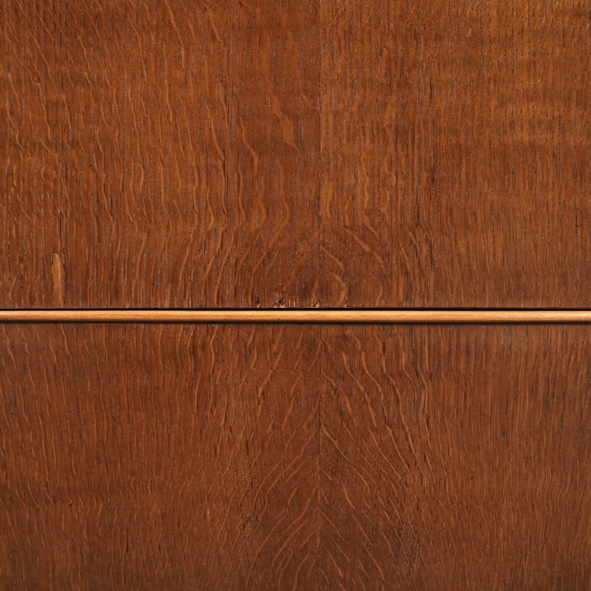 チーク材のチェストとはまた一味違った魅力を楽しんで頂けるオーク材を使用しており、現代の住環境にも違和感なく馴染むバランスの良いデザインの中に、異素材の取手が良いアクセントとなっています。