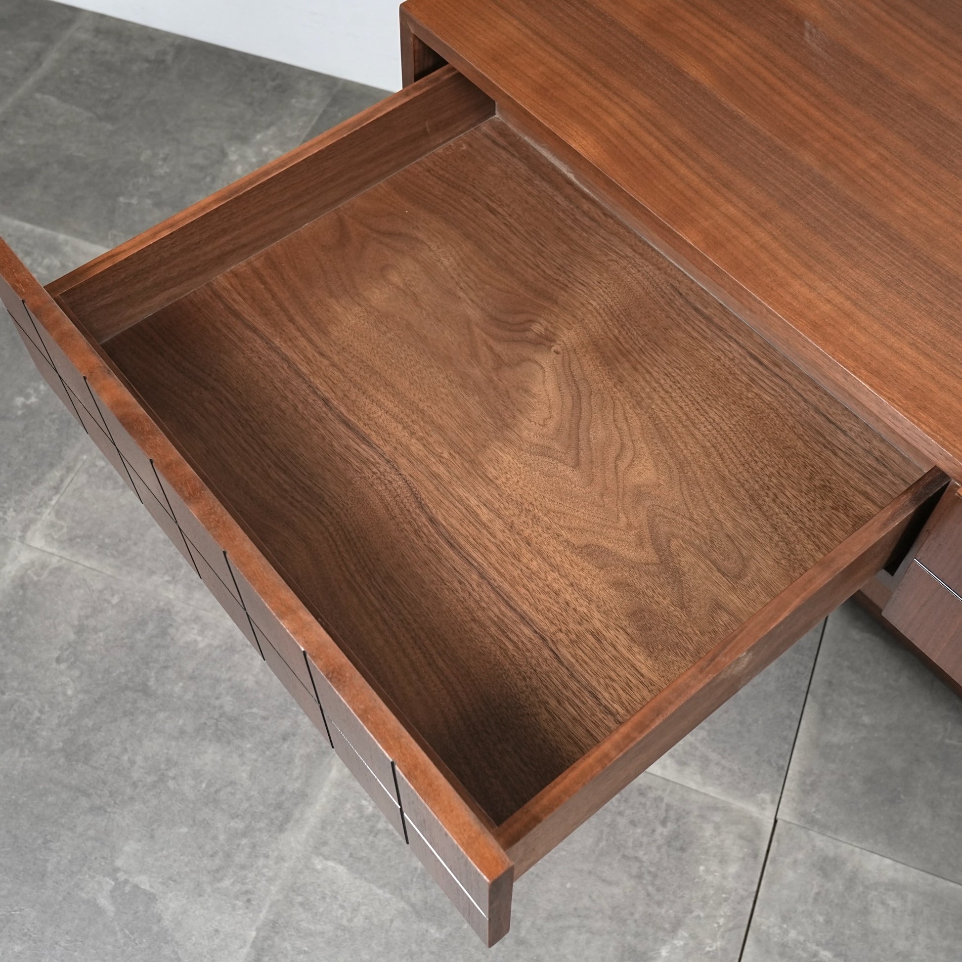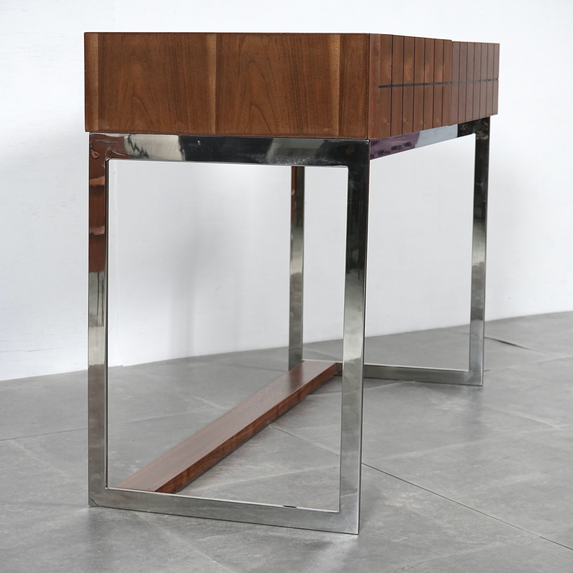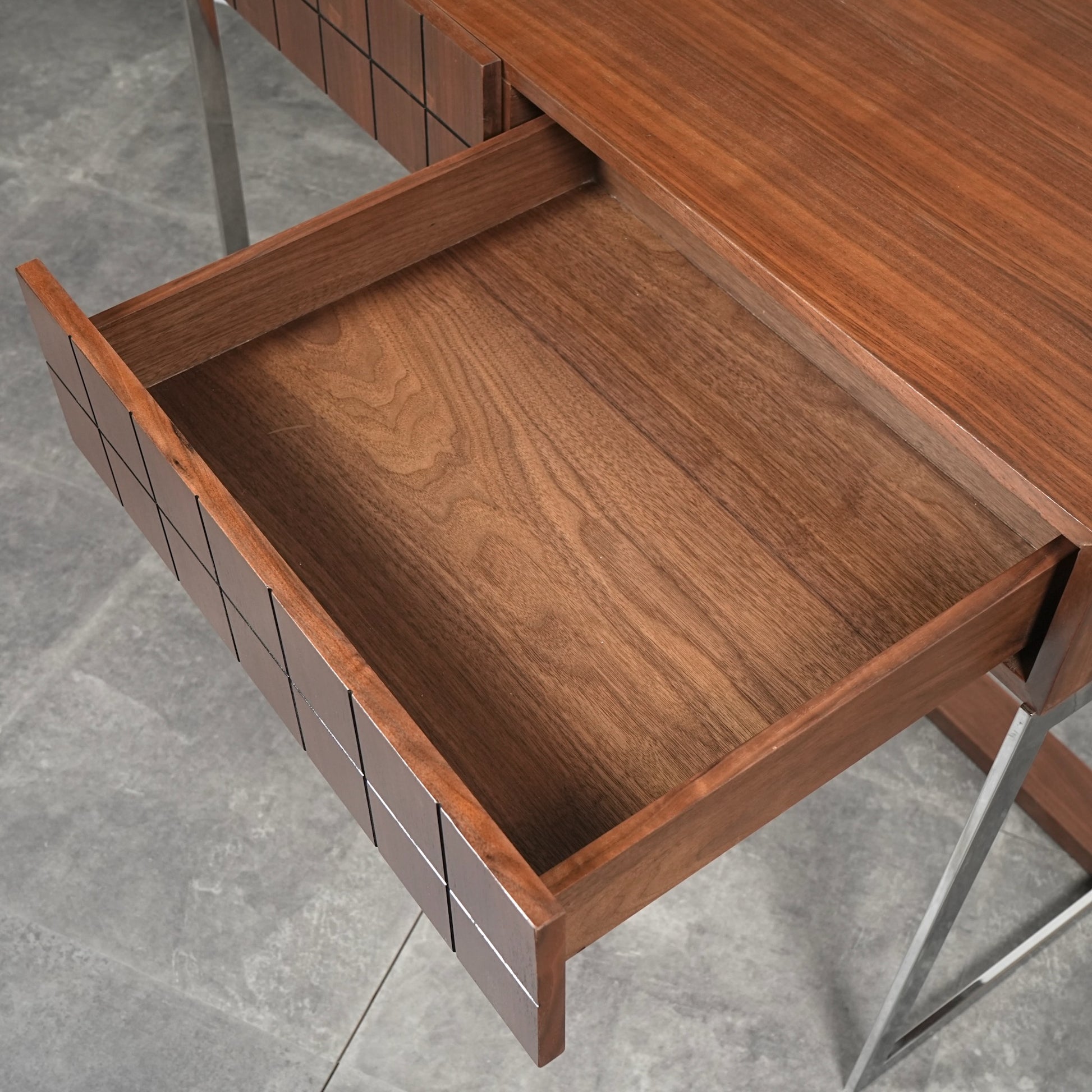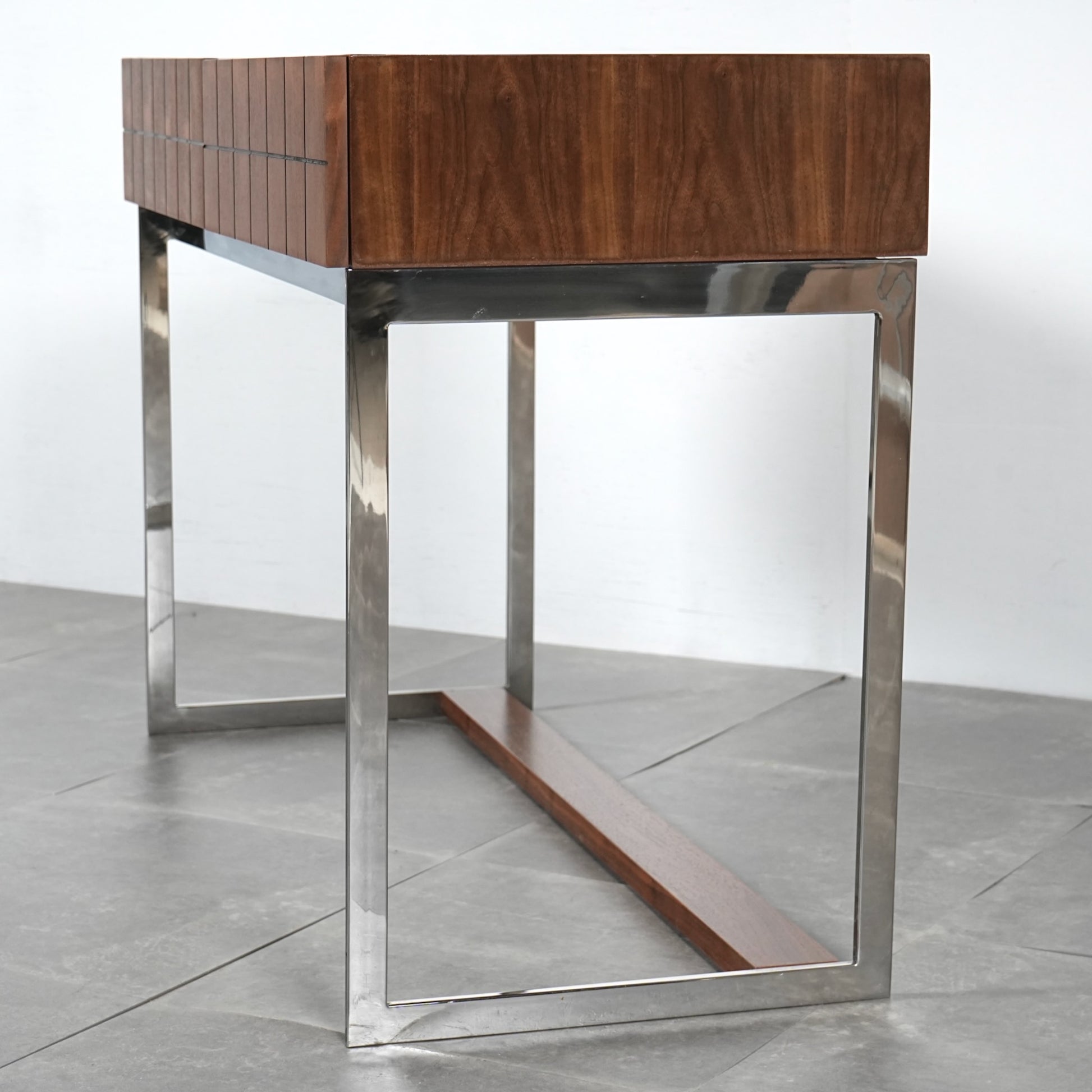 直線的でシャープな美しいデザインで、良質なウォルナット×メタルという異素材のバランスが見事。