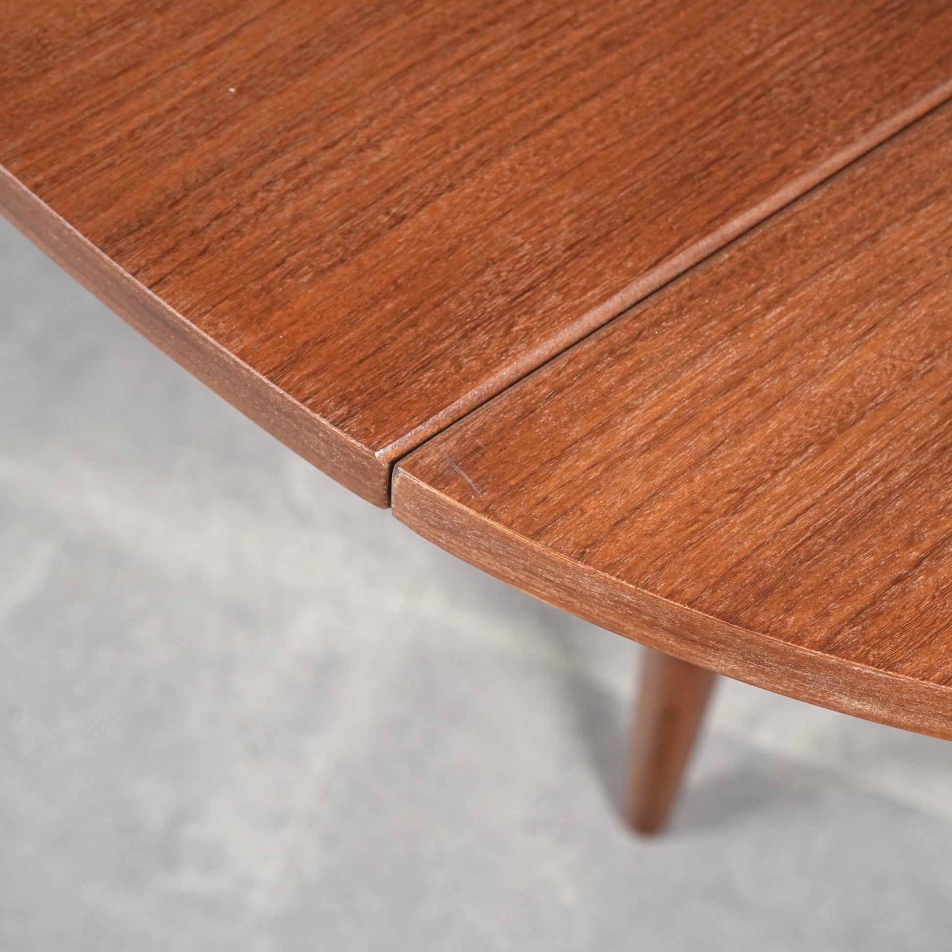 ヴィンテージの定番アイテムとして世界中で愛されるアイテムの1つで、ドローリーフとは天板を拡張する際に軽く持ち上げて下の拡張板を引き出すと上の天板が沈みフラットになる仕組みのこと。