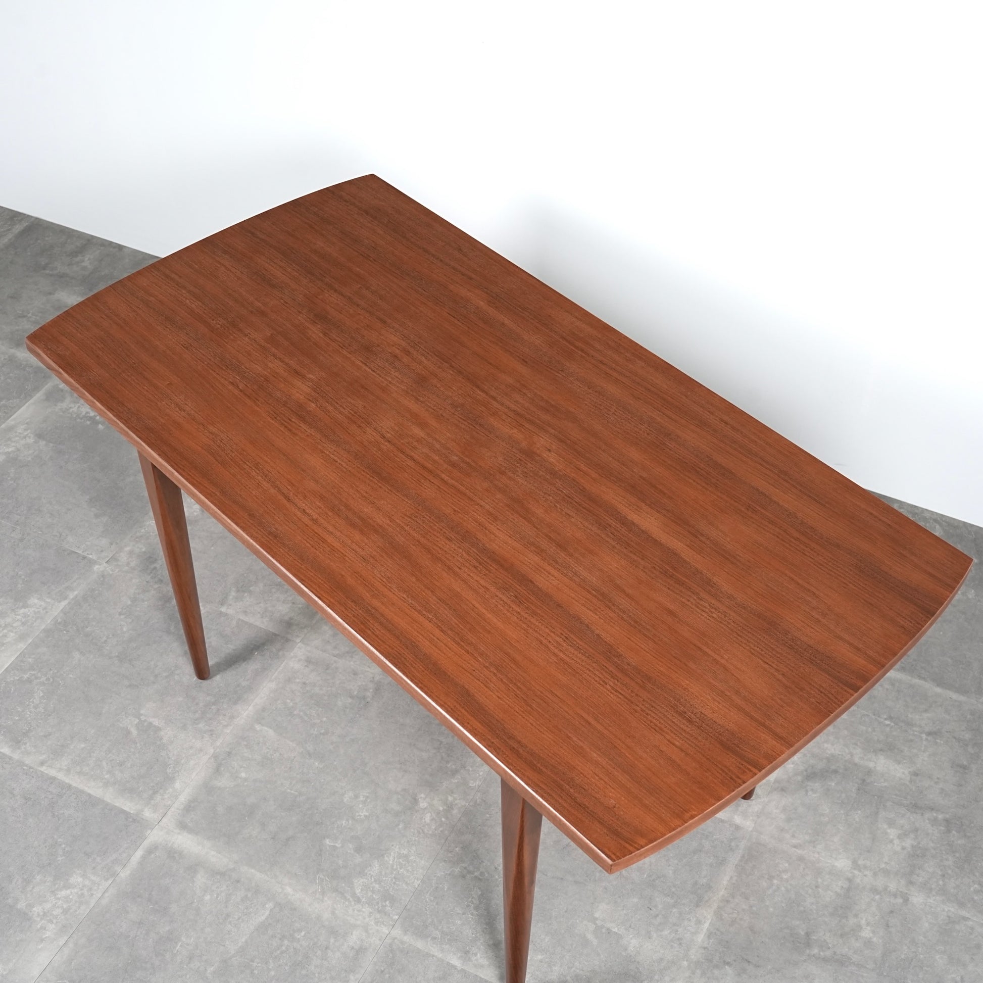 良質なチーク材の美しい木目と質感を存分に感じさせるミニマルデザインが魅力的で、シャープですっきりとした脚部も良いバランス。