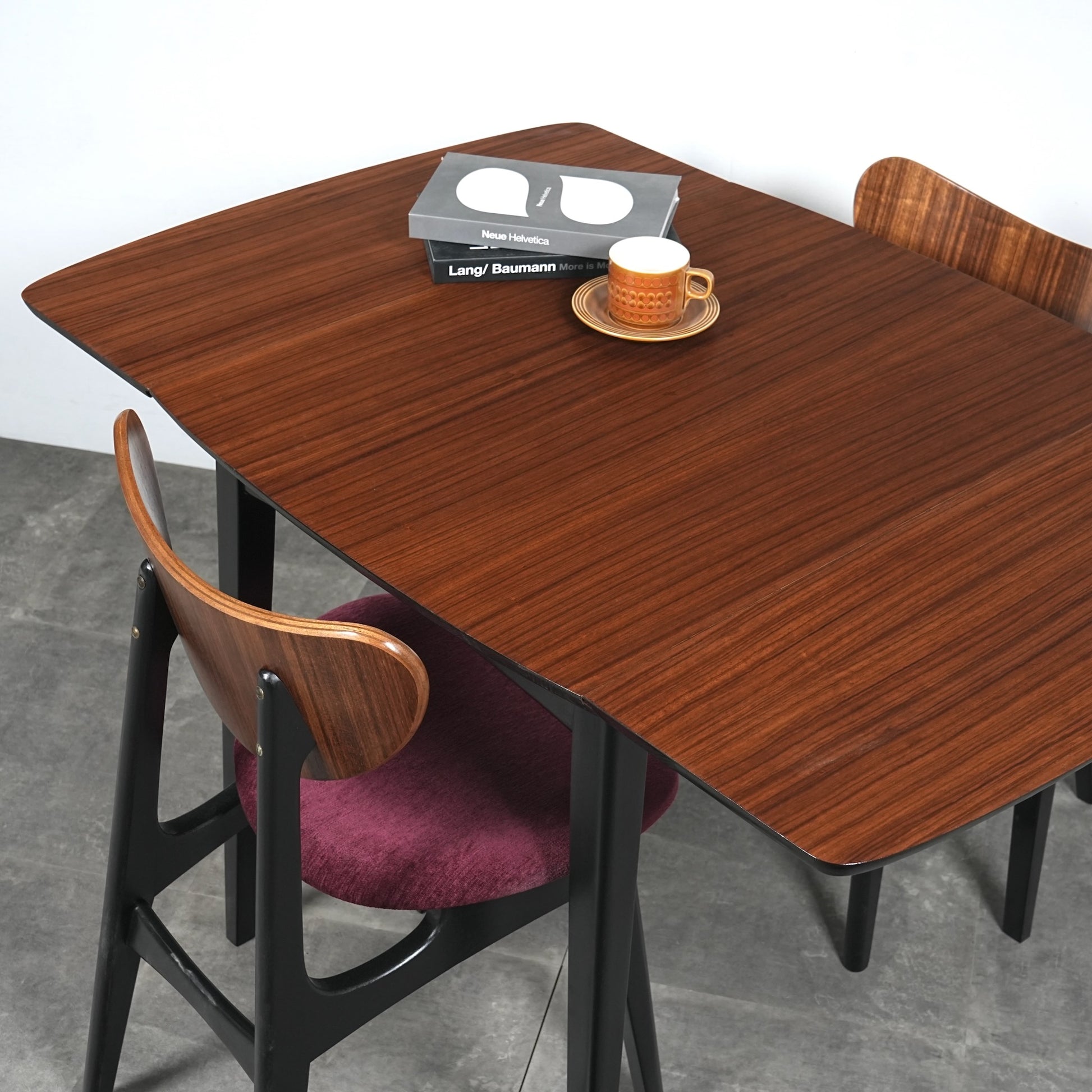 トラー材ならではのユニークな木目や質感、そしてシャープな脚部のデザインなど、ミッドセンチュリー家具ならではの魅力を感じられるアイテムです。