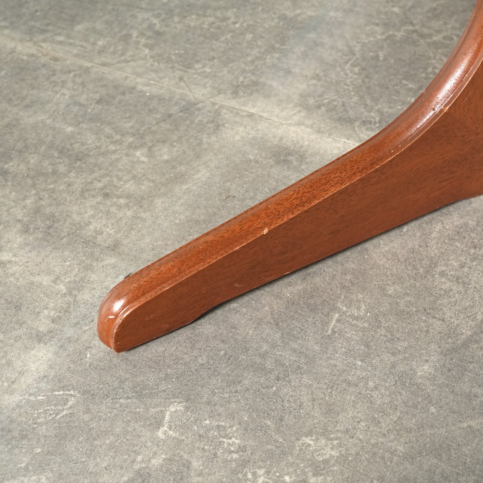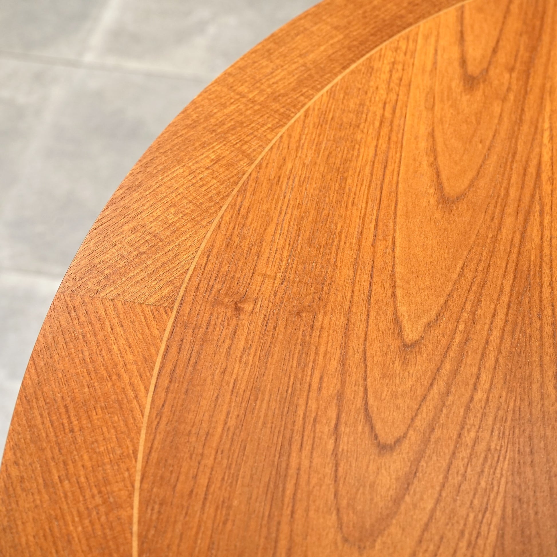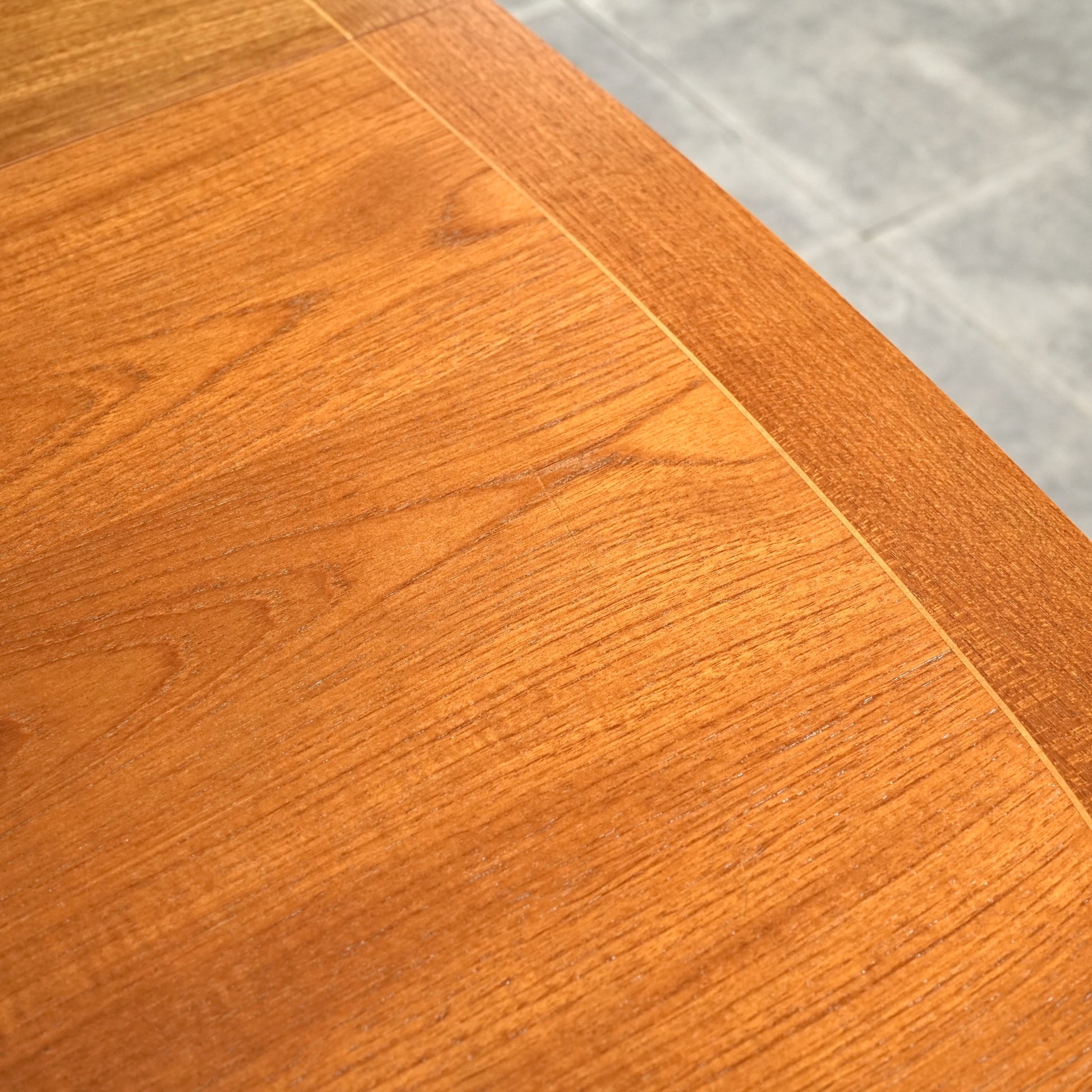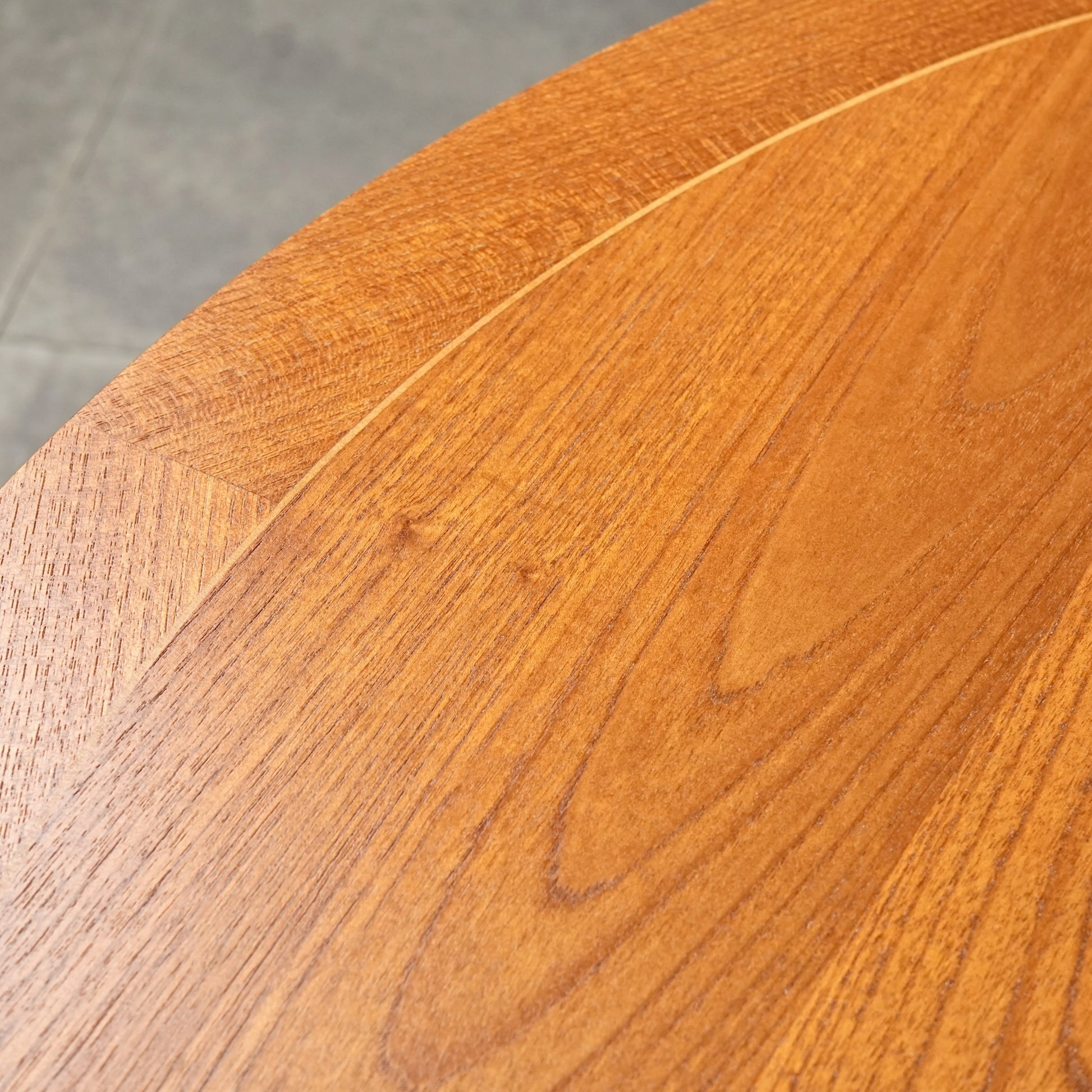 良質なチーク材の質感だけでなく、天板のデザインや脚部のシャープなフォルムも印象的で、細部まで丁寧な作り込みが光る高品質なヴィンテージアイテムです。