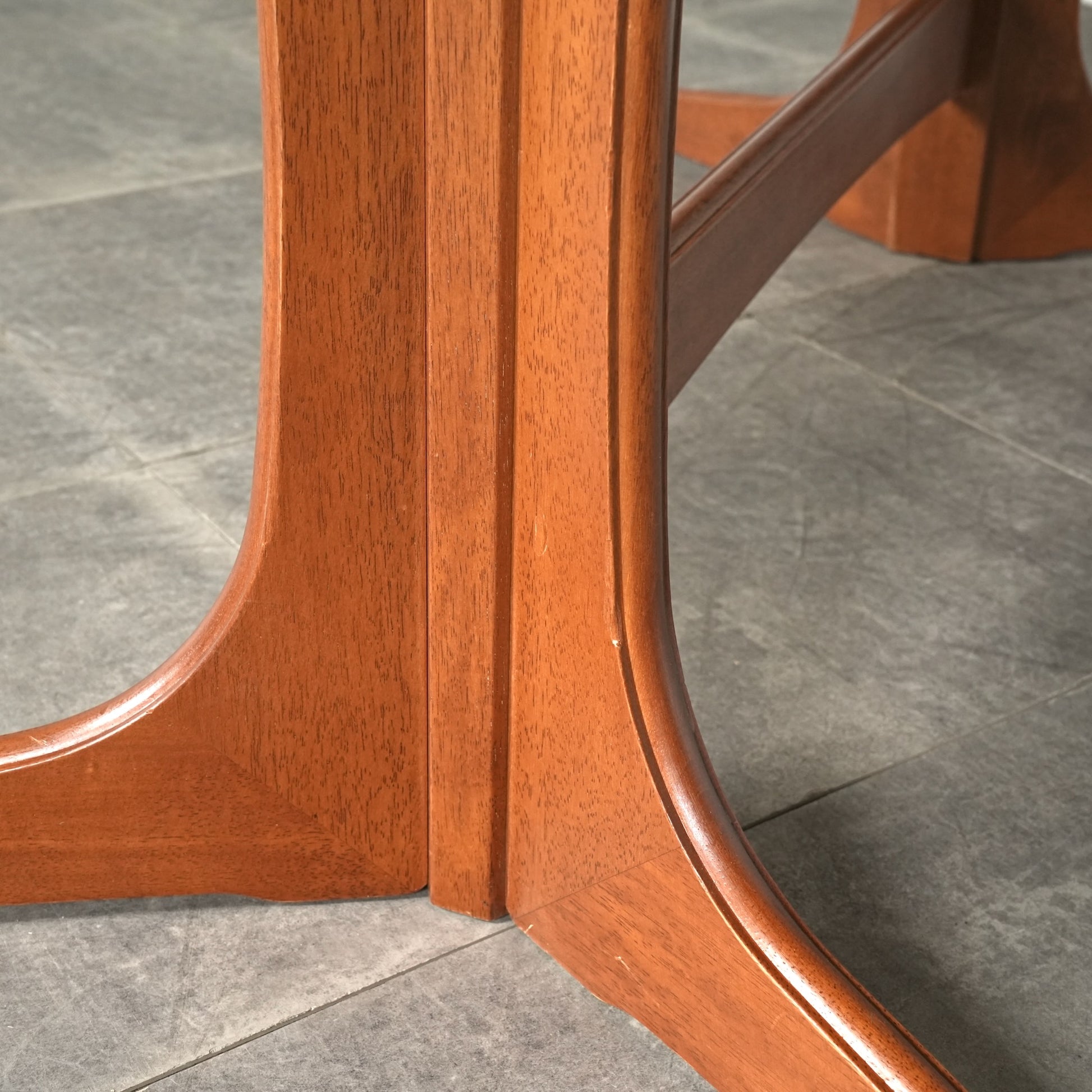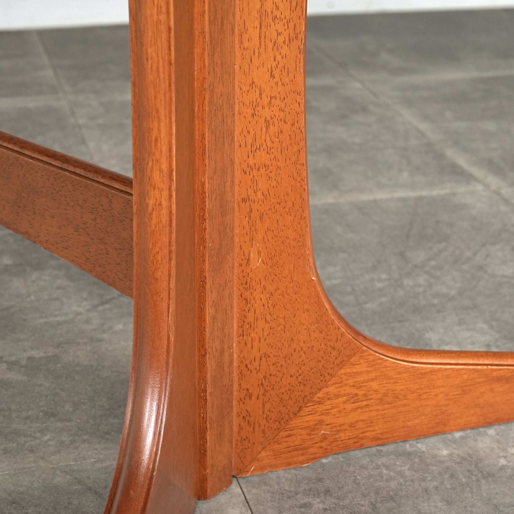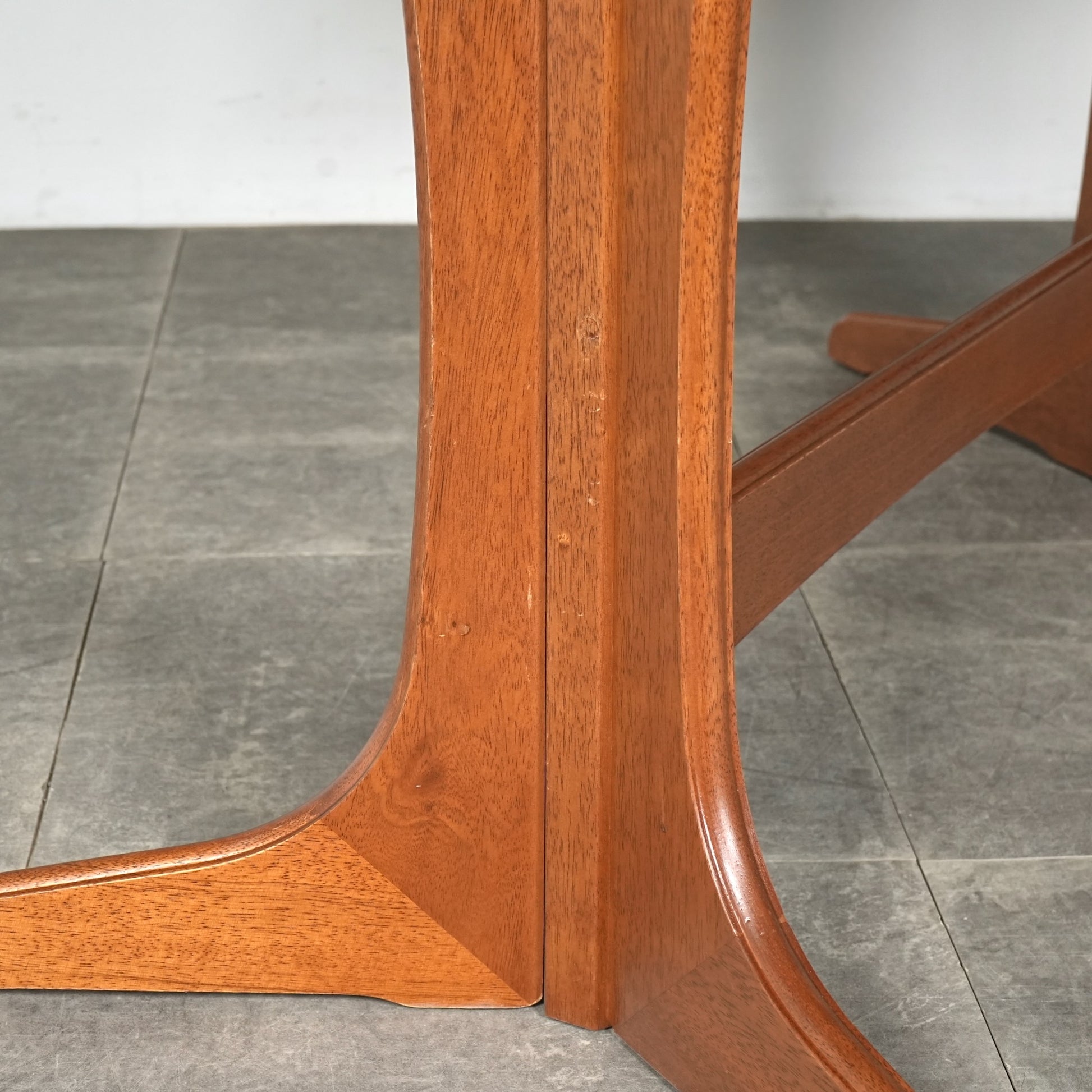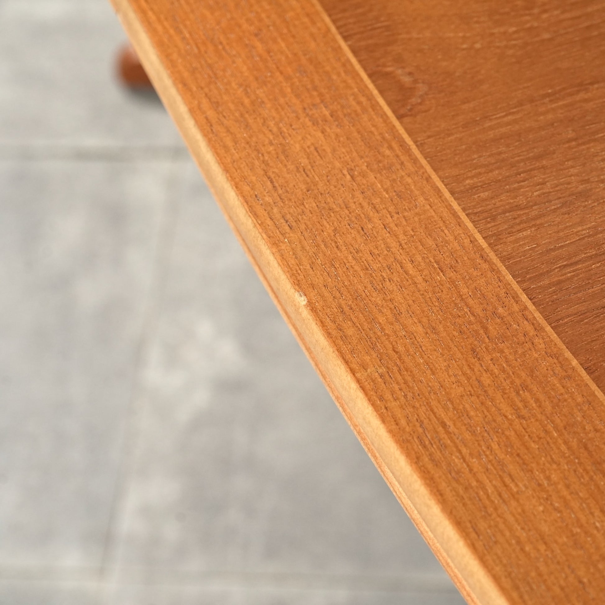 良質なチーク材の質感だけでなく、天板のデザインや脚部のシャープなフォルムも印象的で、細部まで丁寧な作り込みが光る高品質なヴィンテージアイテムです。