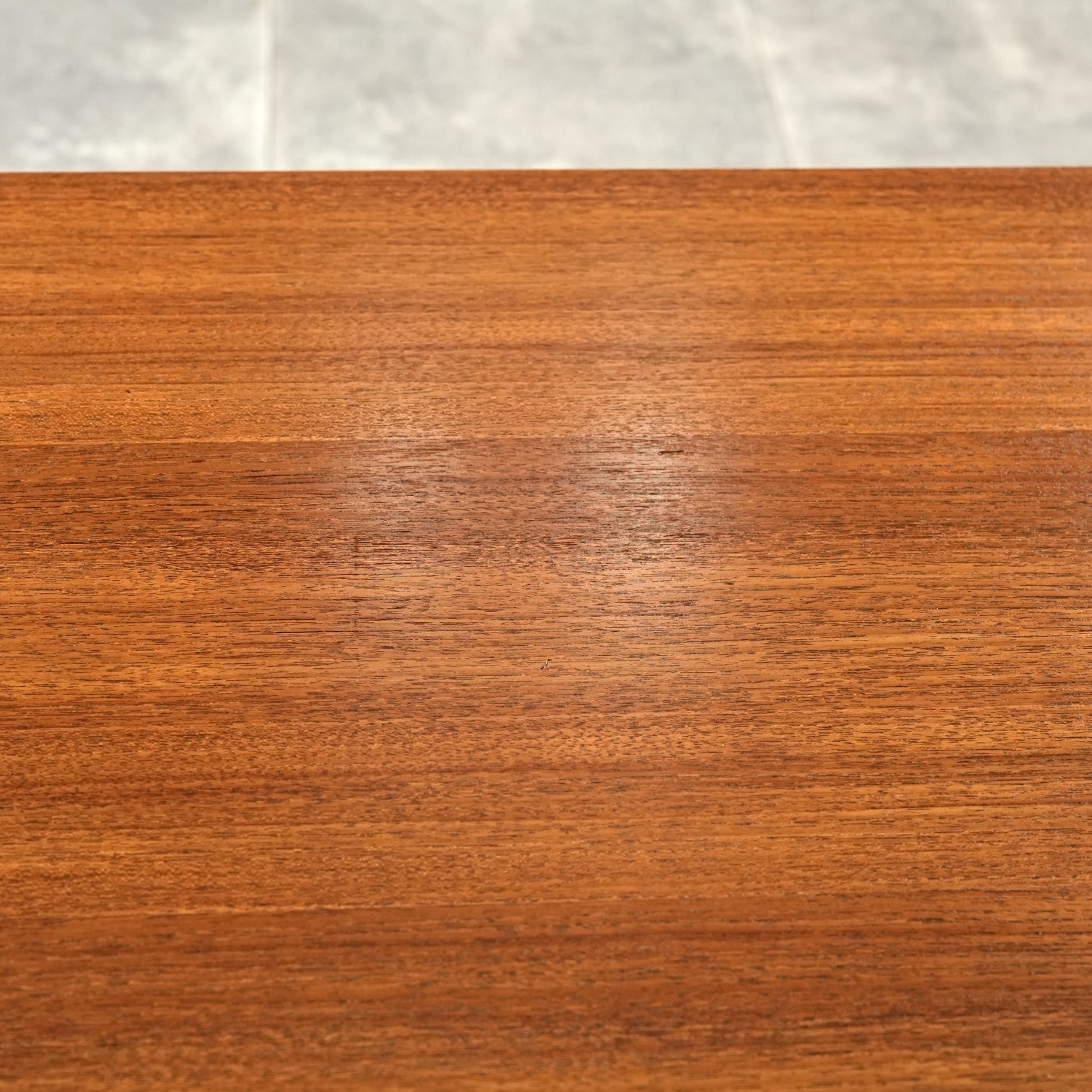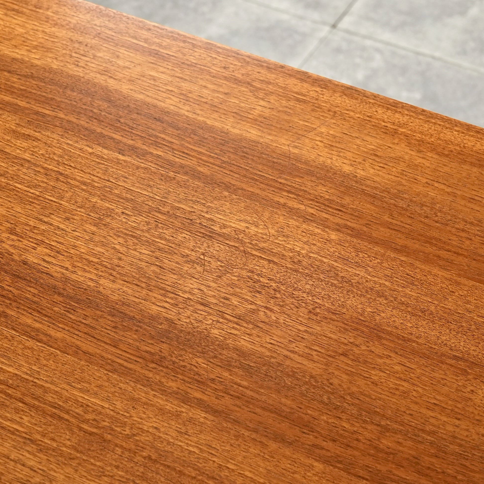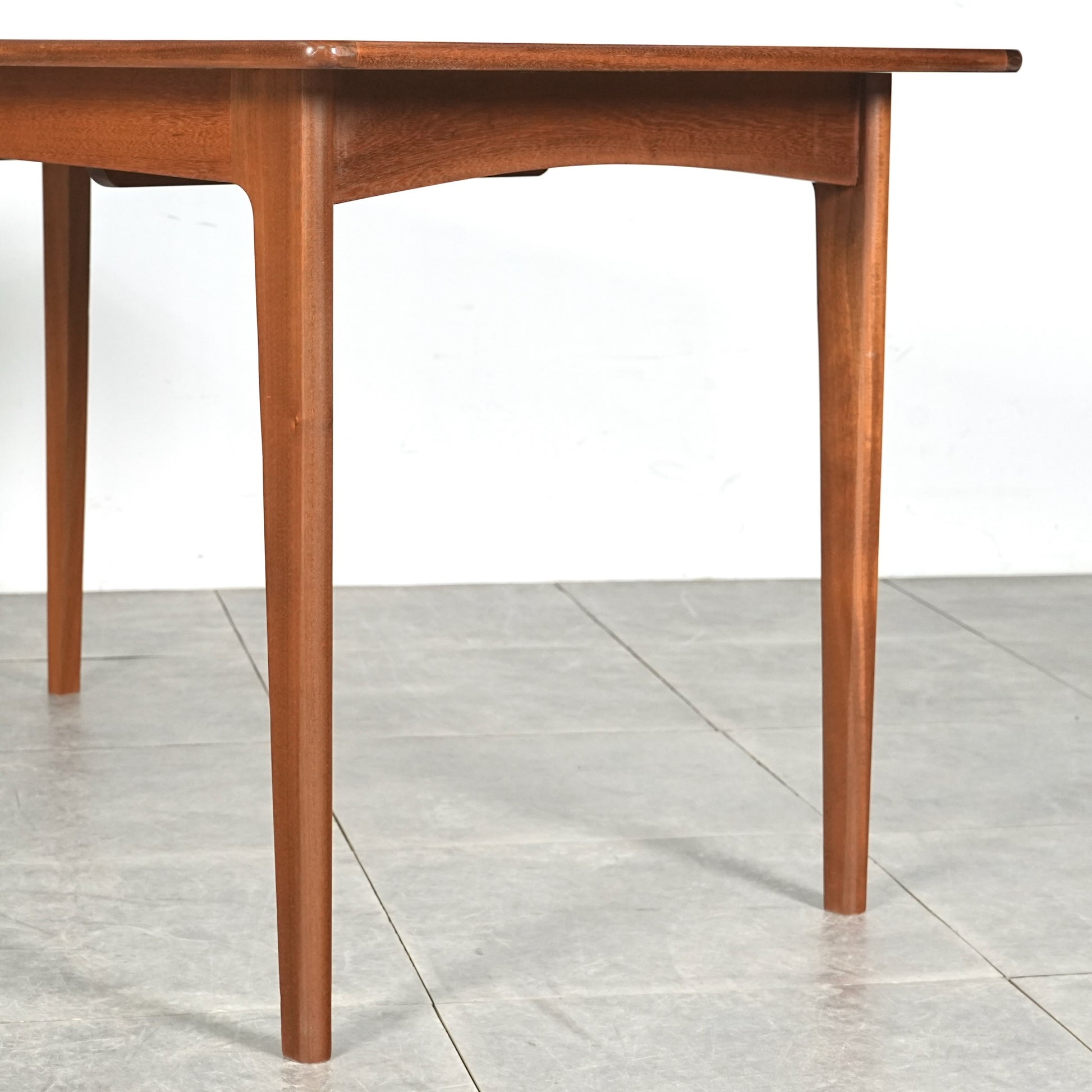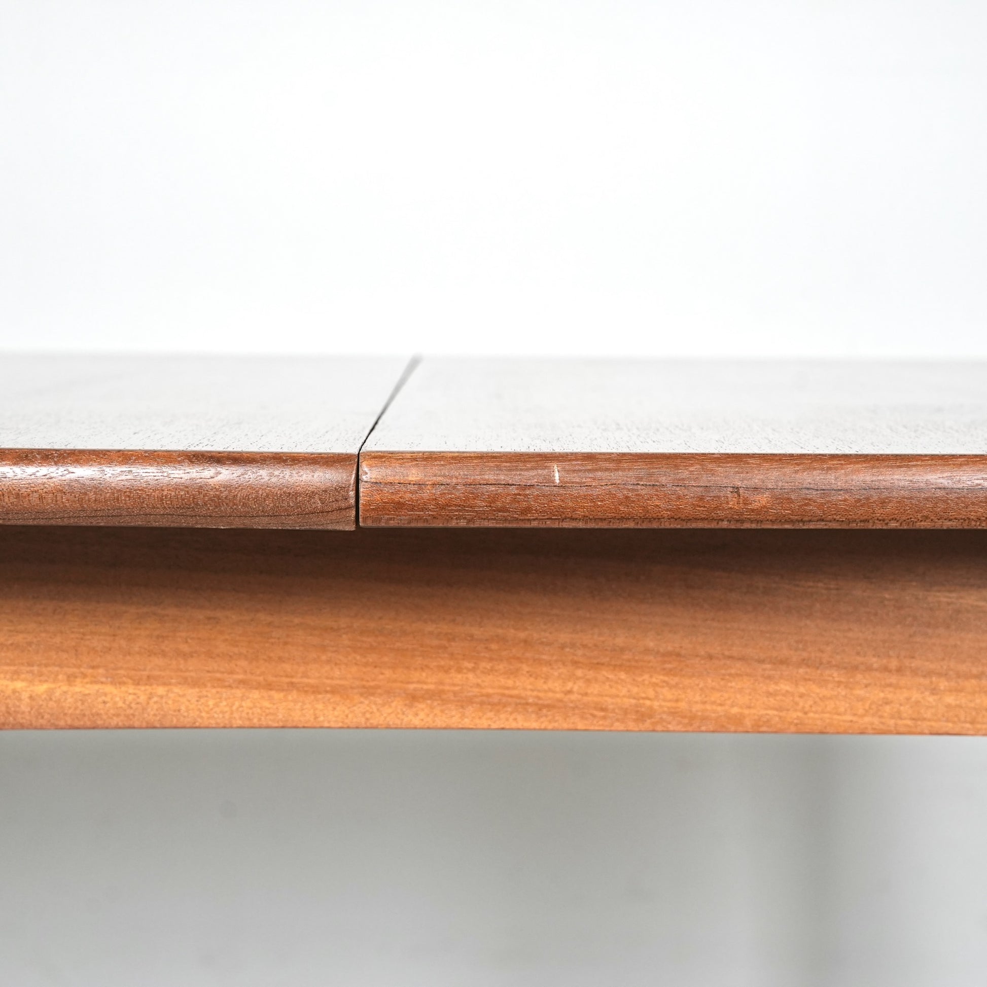 良質なチーク材の魅力が際立つミニマルな構成で、この時代のテーブルには標準装備とも言えるエクステンション(拡張)機能を備えており、4人掛けサイズ→6人掛けサイズへと簡単に拡張可能。