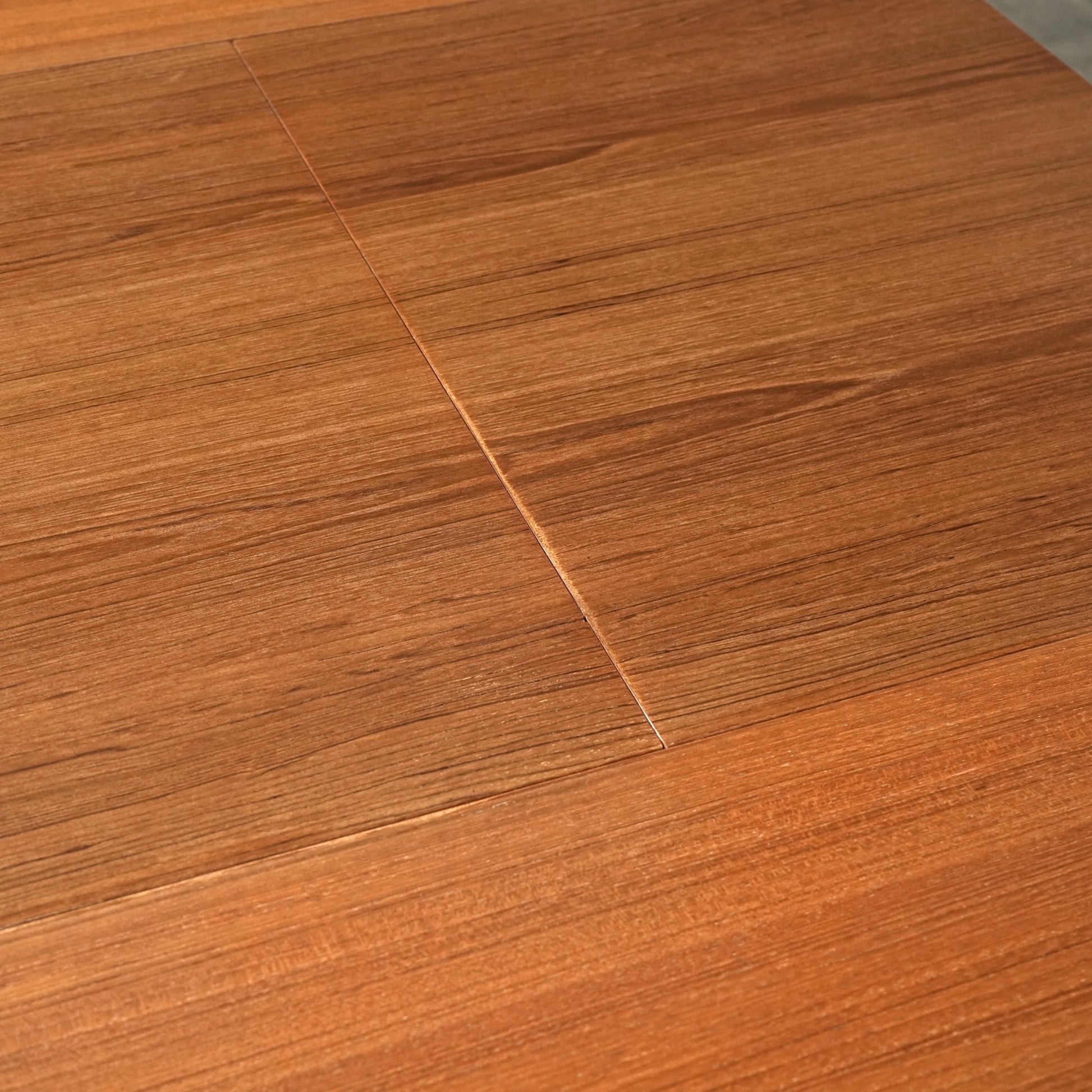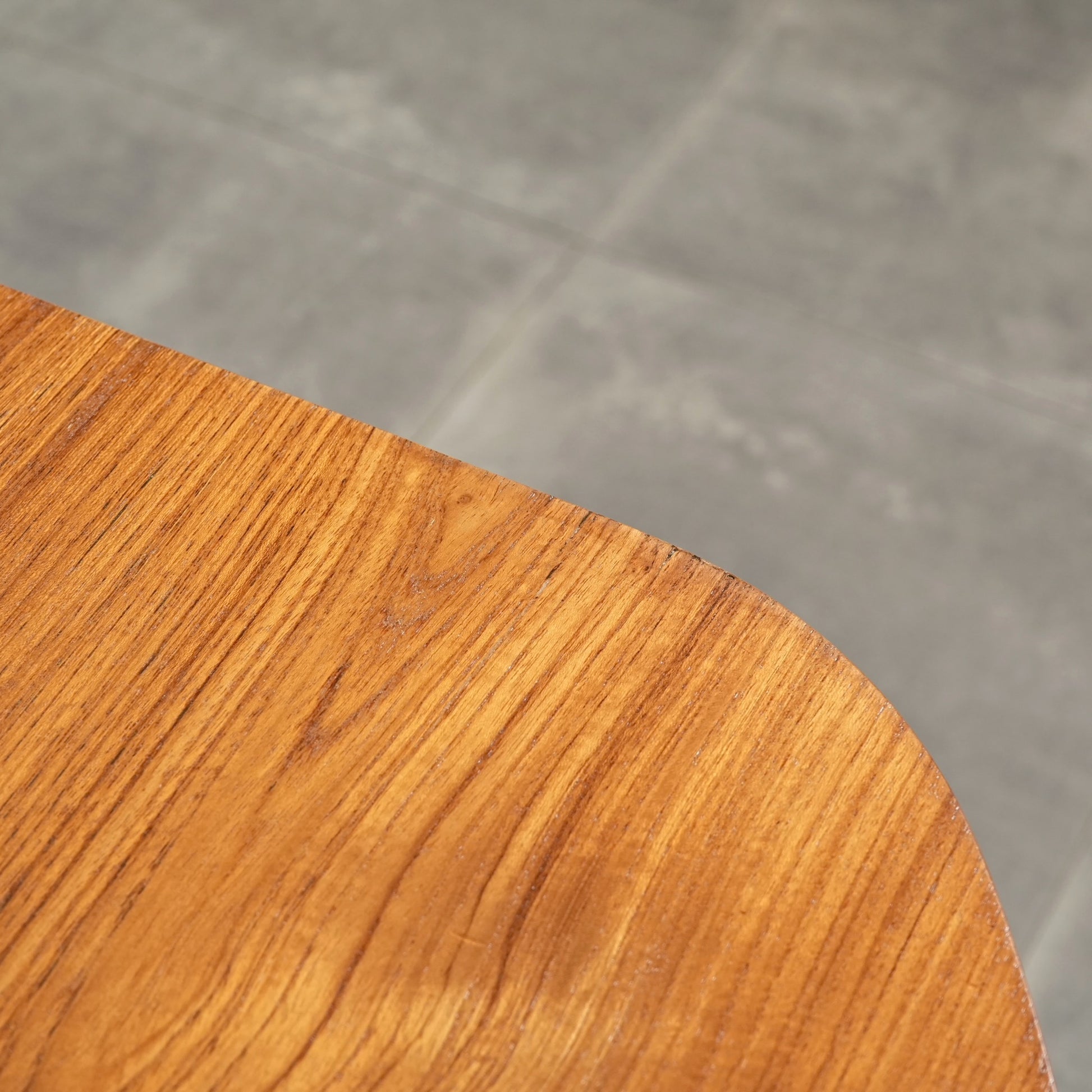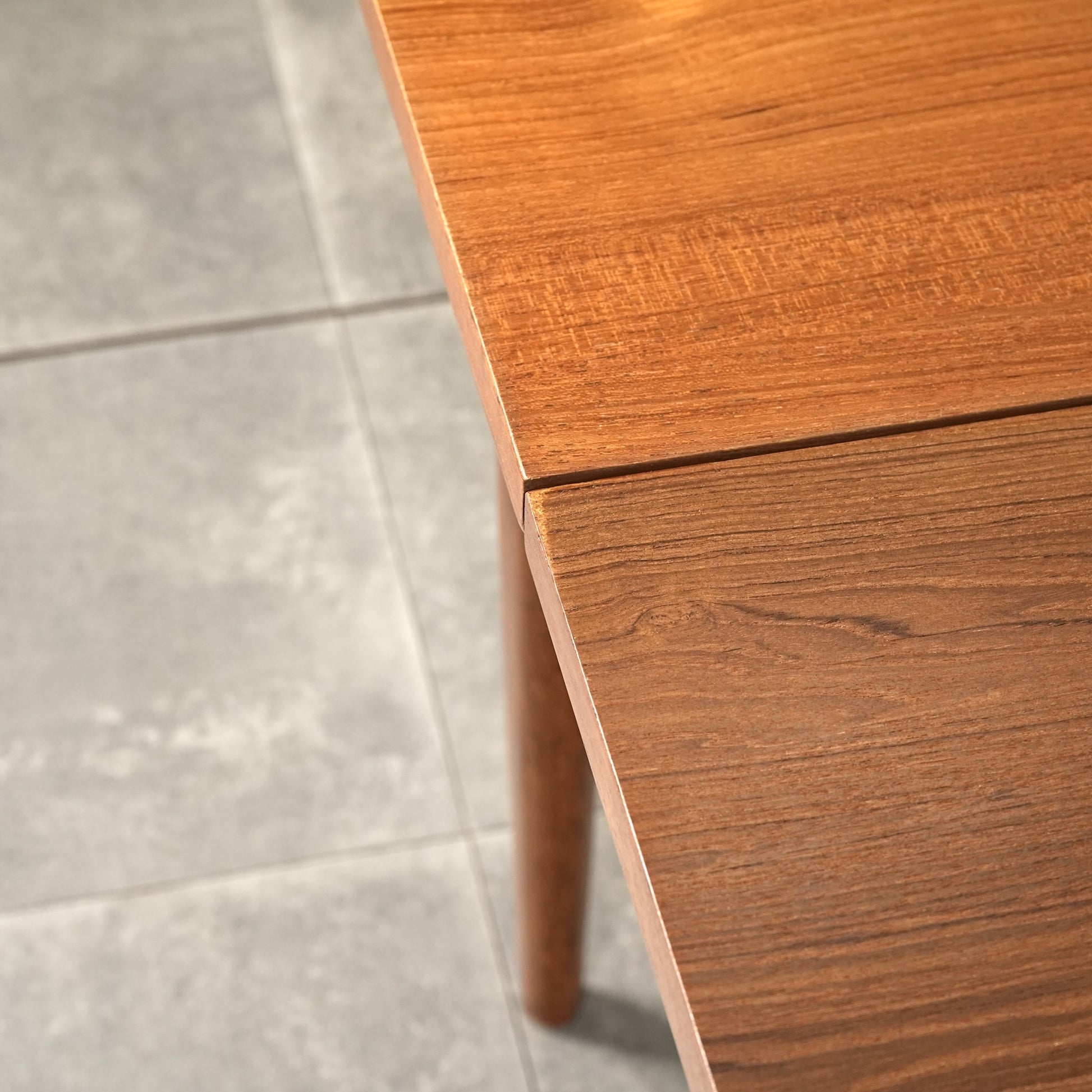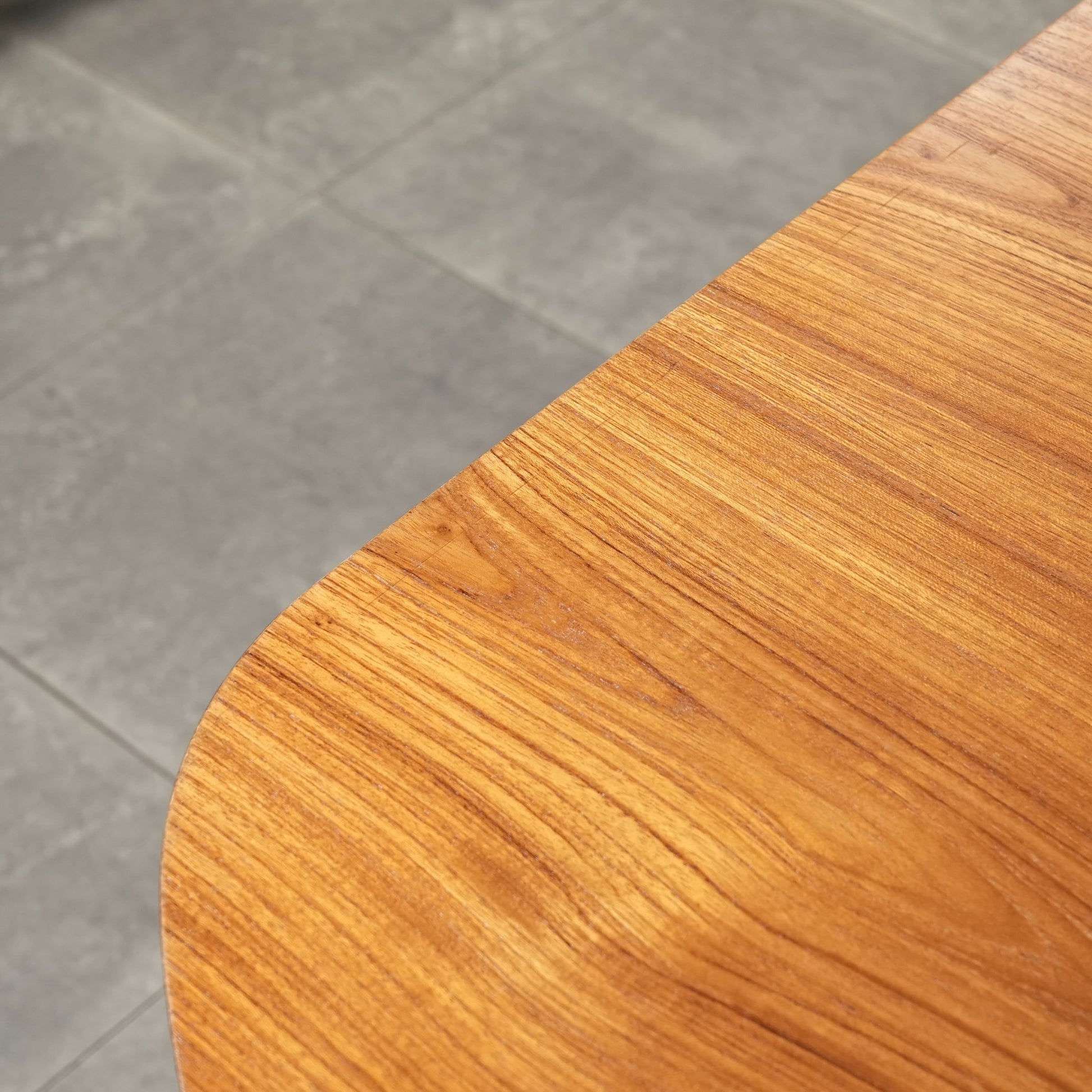 良質なチーク材の質感だけでなく、天板のデザインや脚部のシャープなフォルムも印象的で、細部まで丁寧な作り込みが光る高品質なヴィンテージアイテムです。