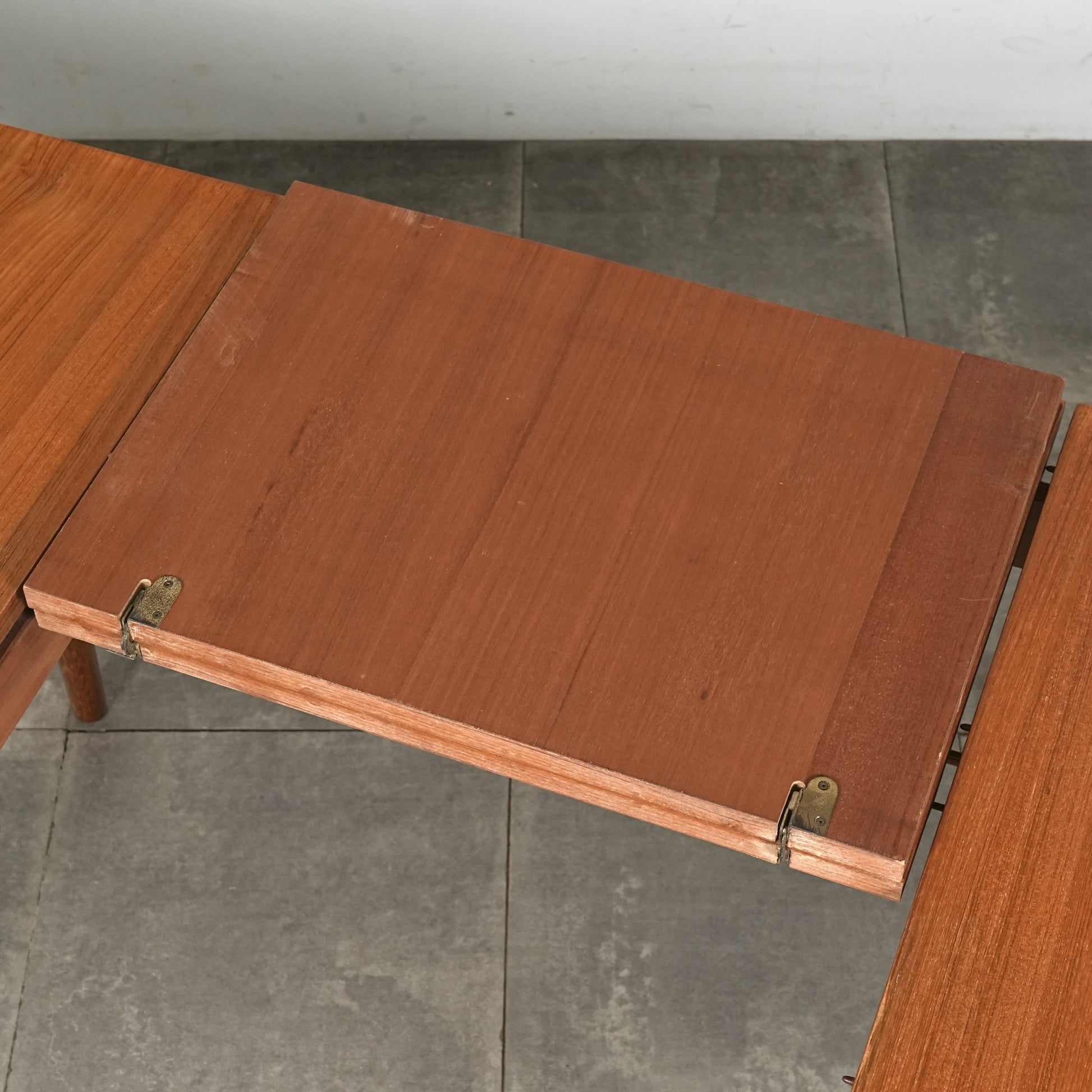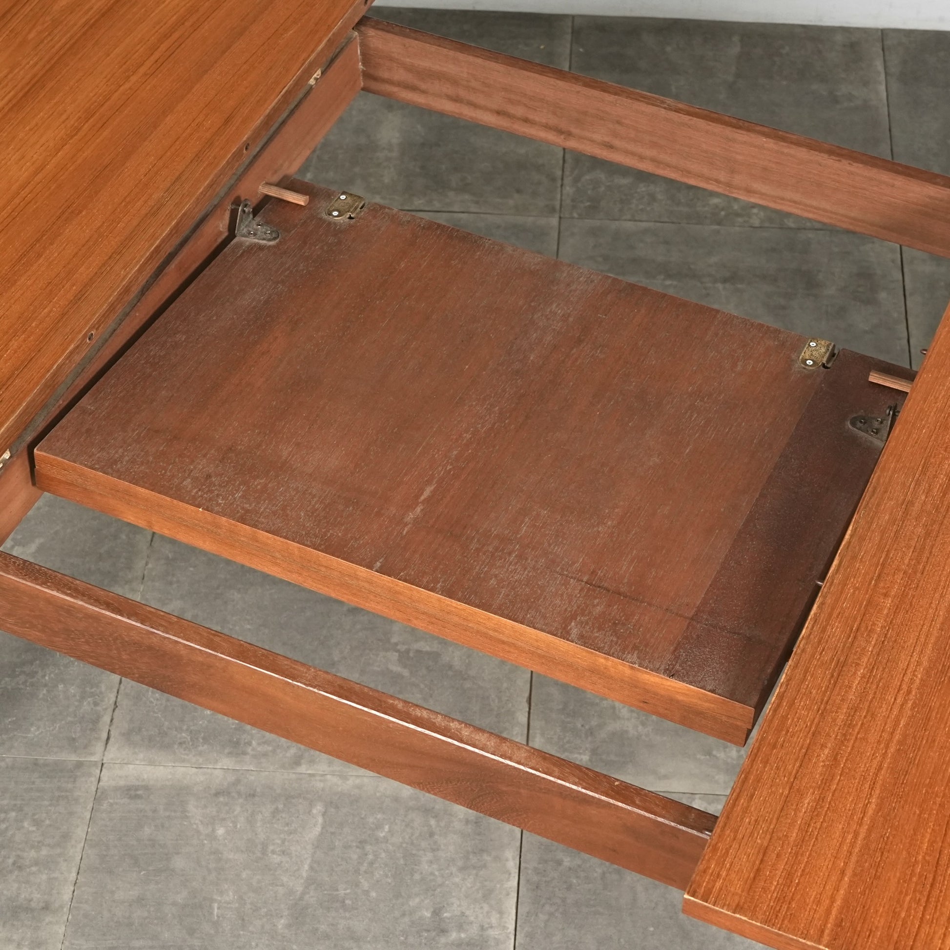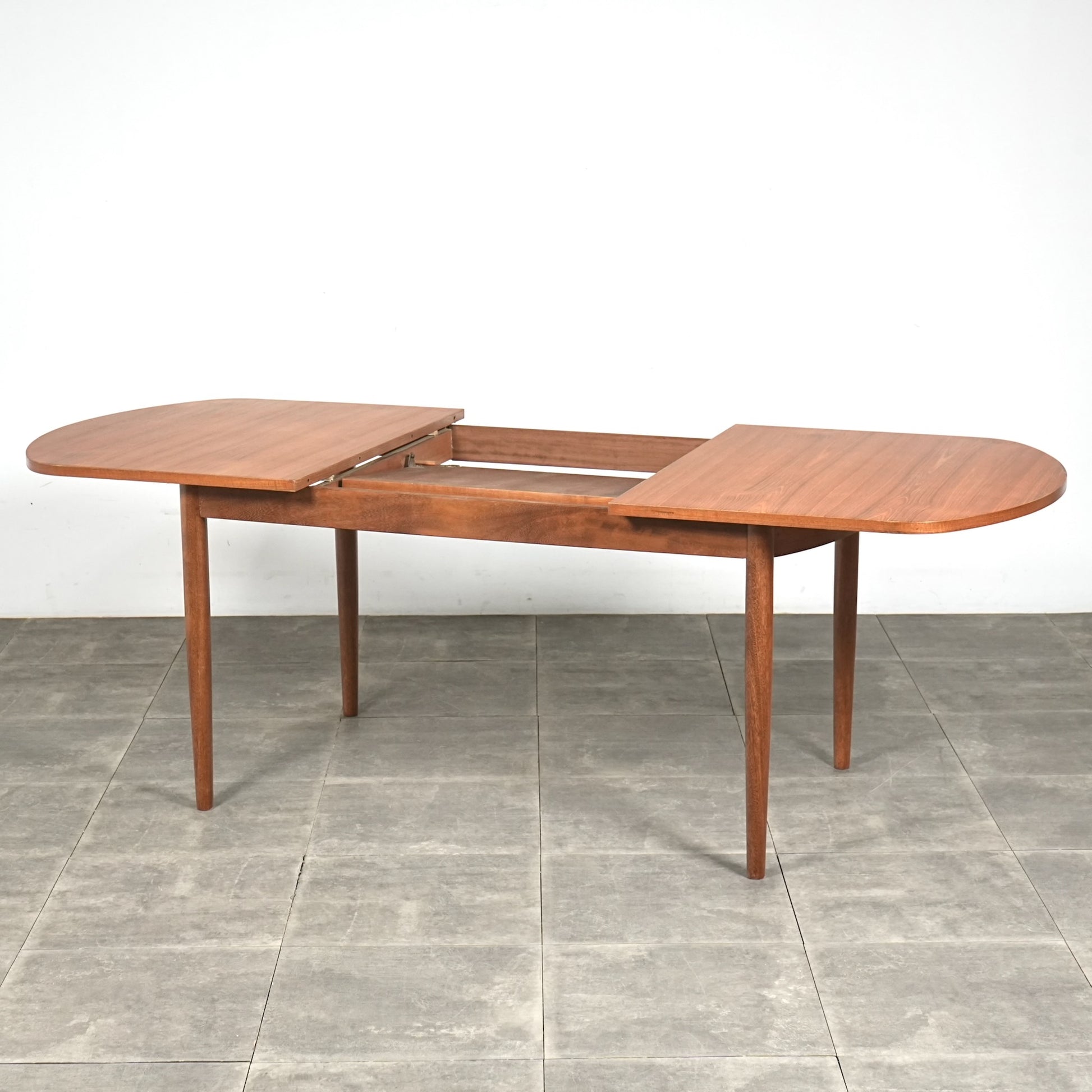 この時代のテーブルには標準装備とも言えるエクステンション(拡張)機能を備えており、4人掛けサイズ→6人掛けサイズへと簡単に拡張できるのが最大の魅力。