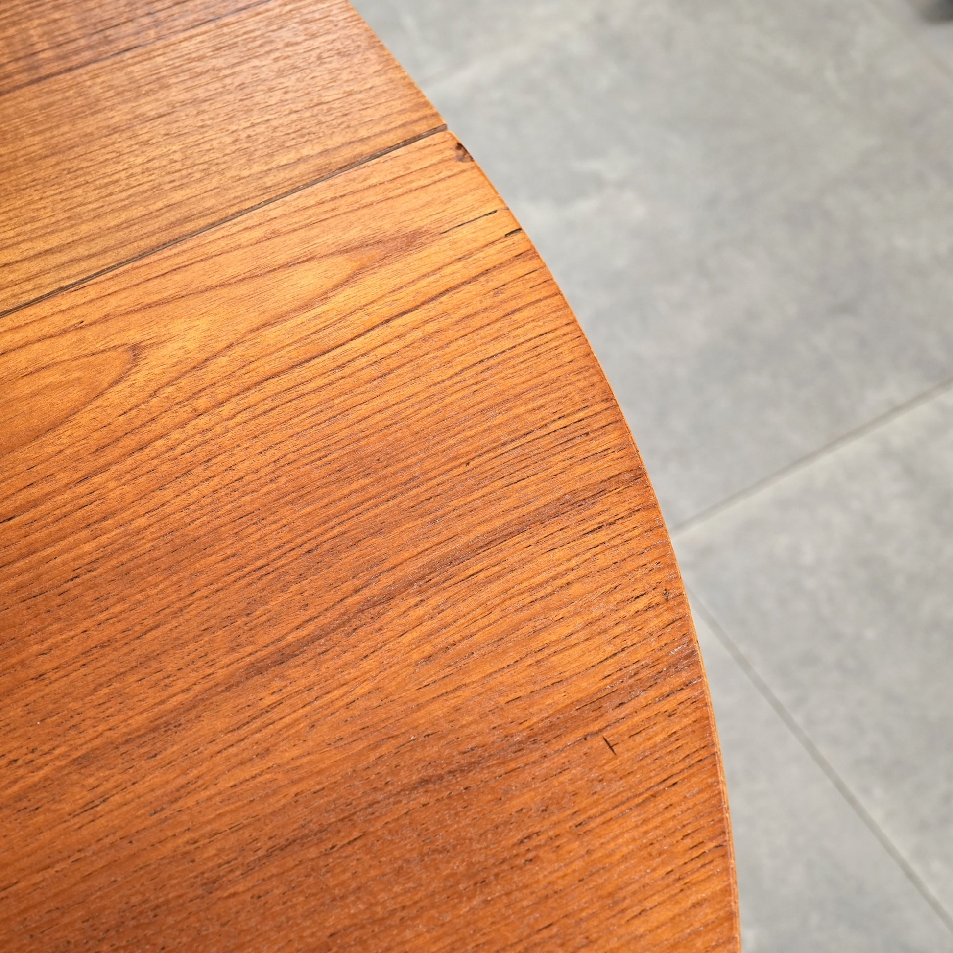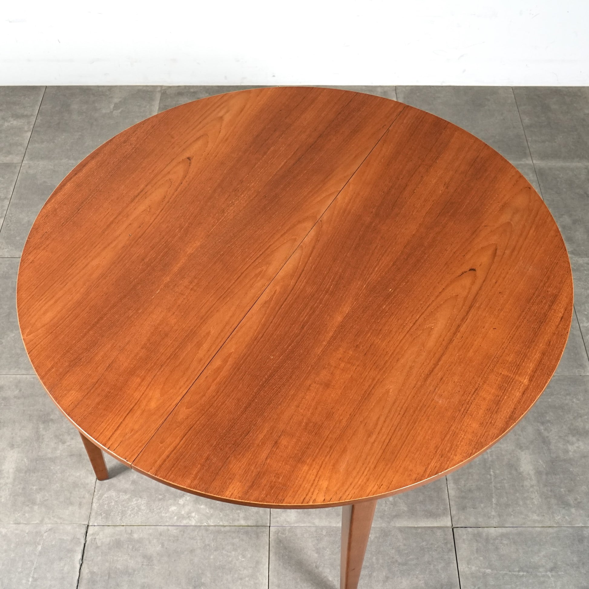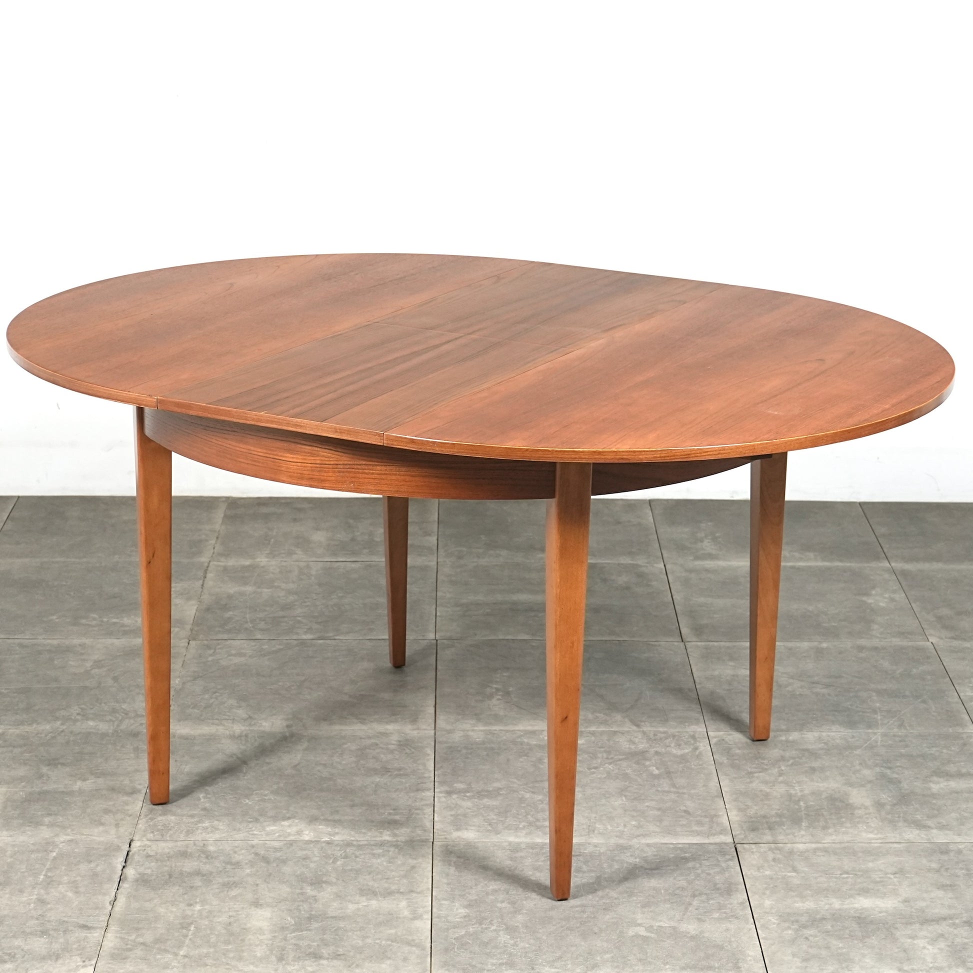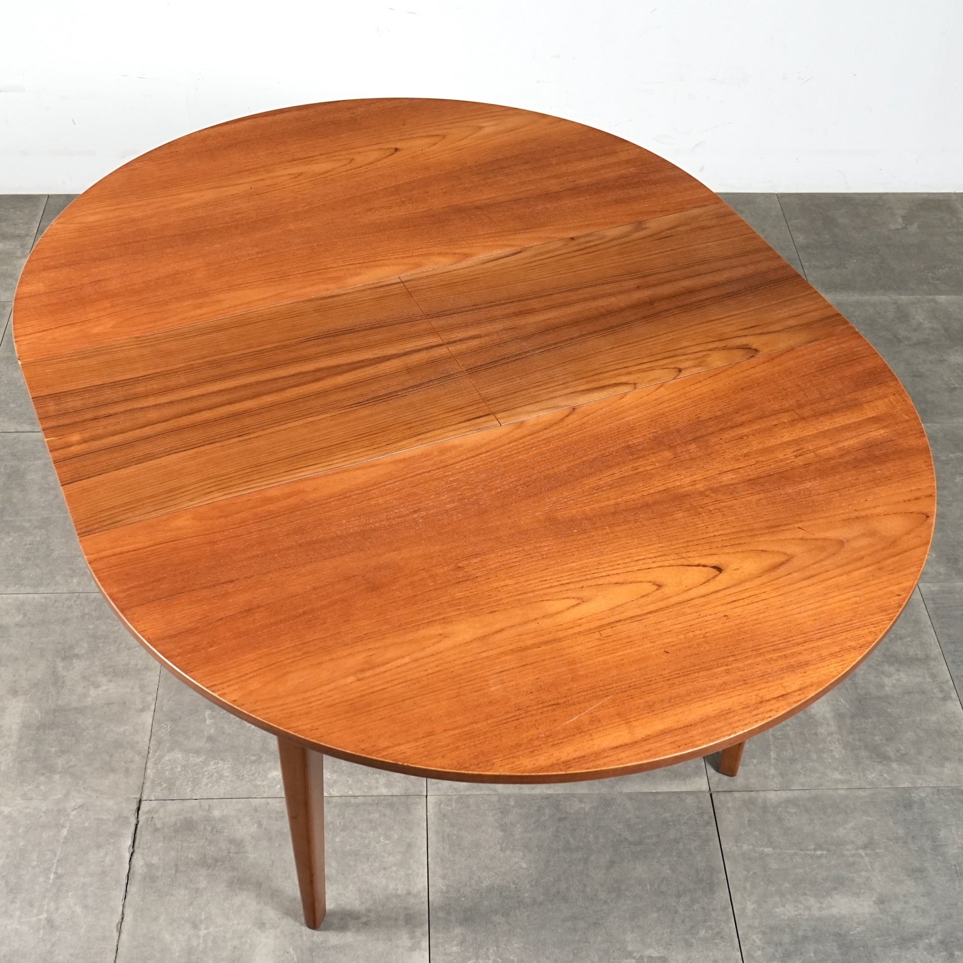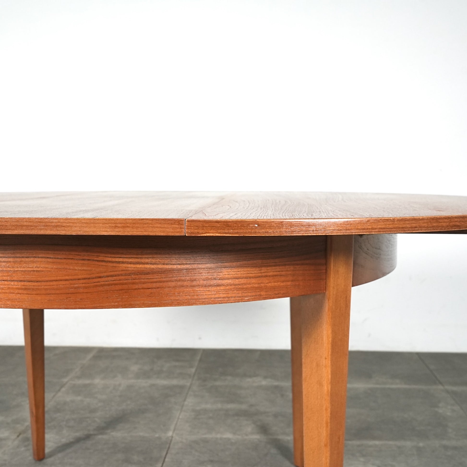 上質なチーク材を使用しており、この時代のテーブルには標準装備とも言えるエクステンション(拡張)機能を備えており、4人掛けサイズ→6人掛けサイズへと簡単に拡張できるのが最大の魅力。