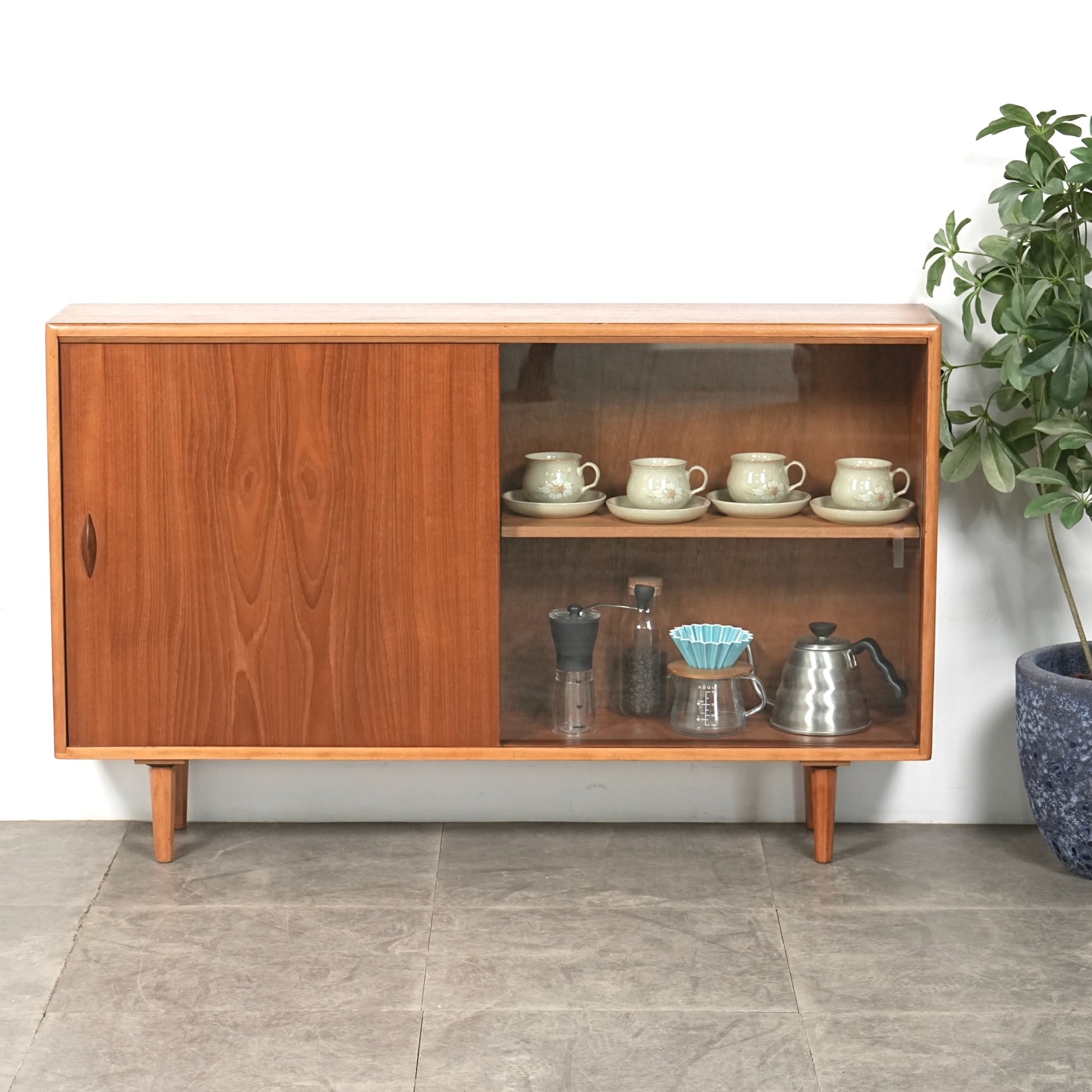 英国ミッドセンチュリー期に製造されたガラスキャビネット。