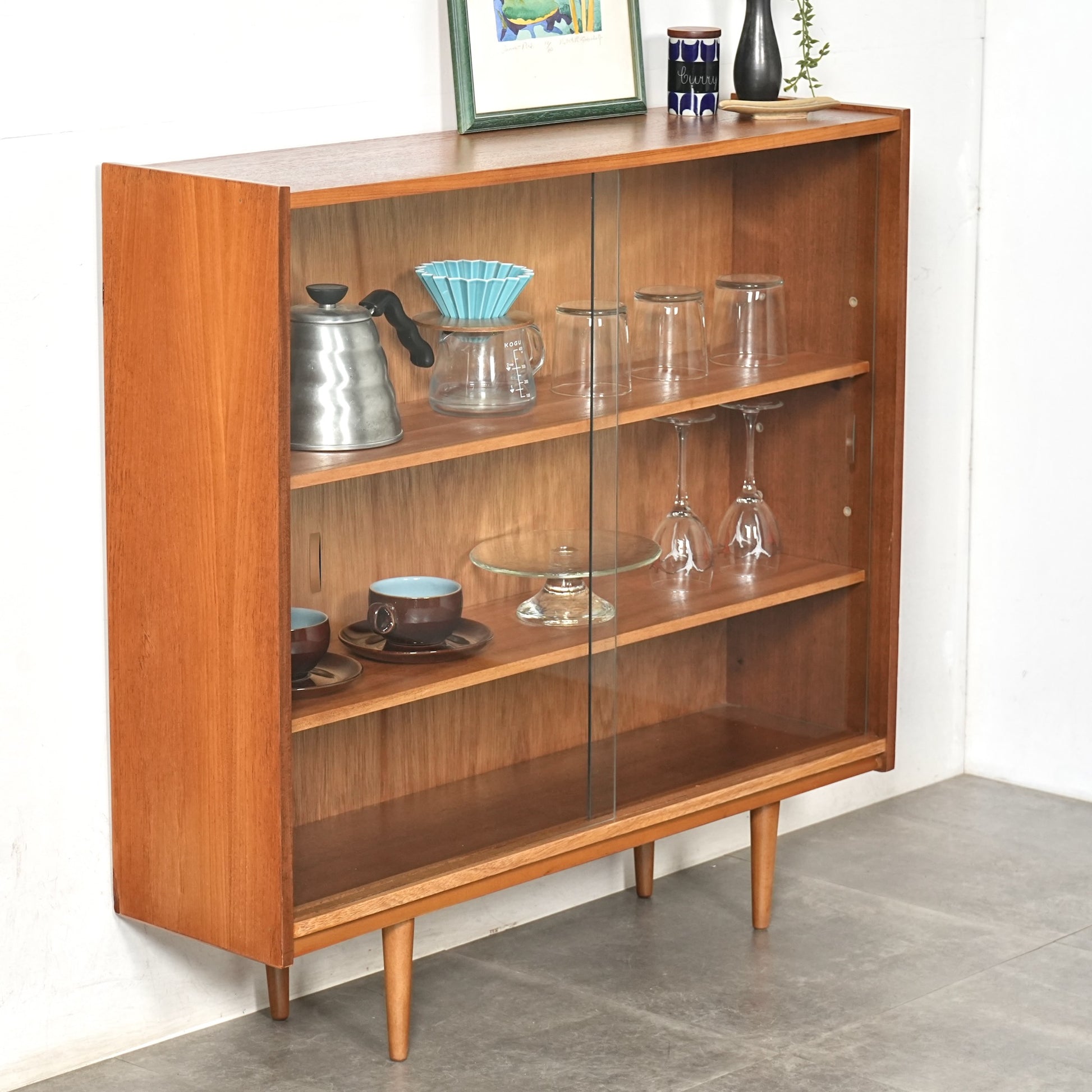 イギリスで買い付けたシンプルなガラスキャビネット。