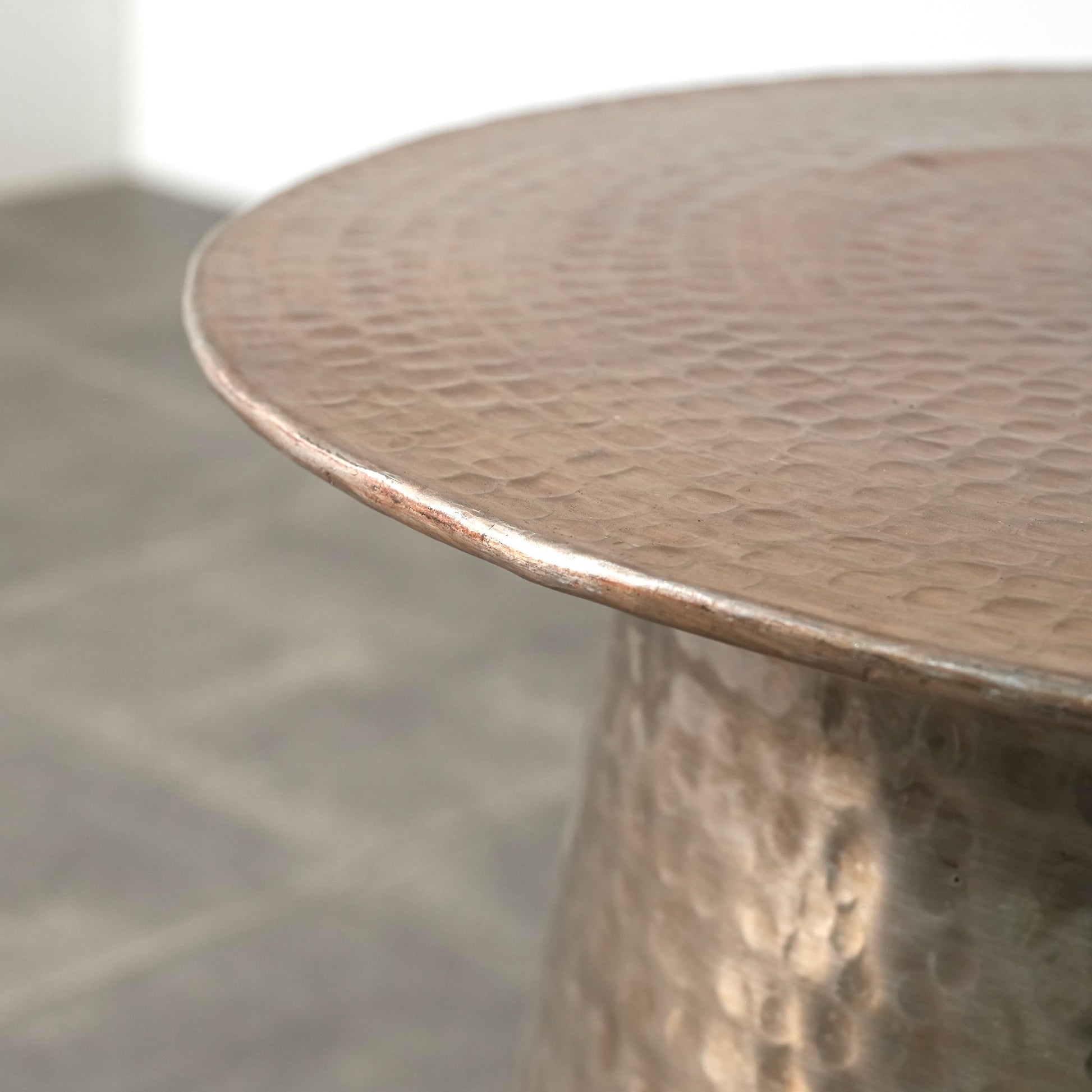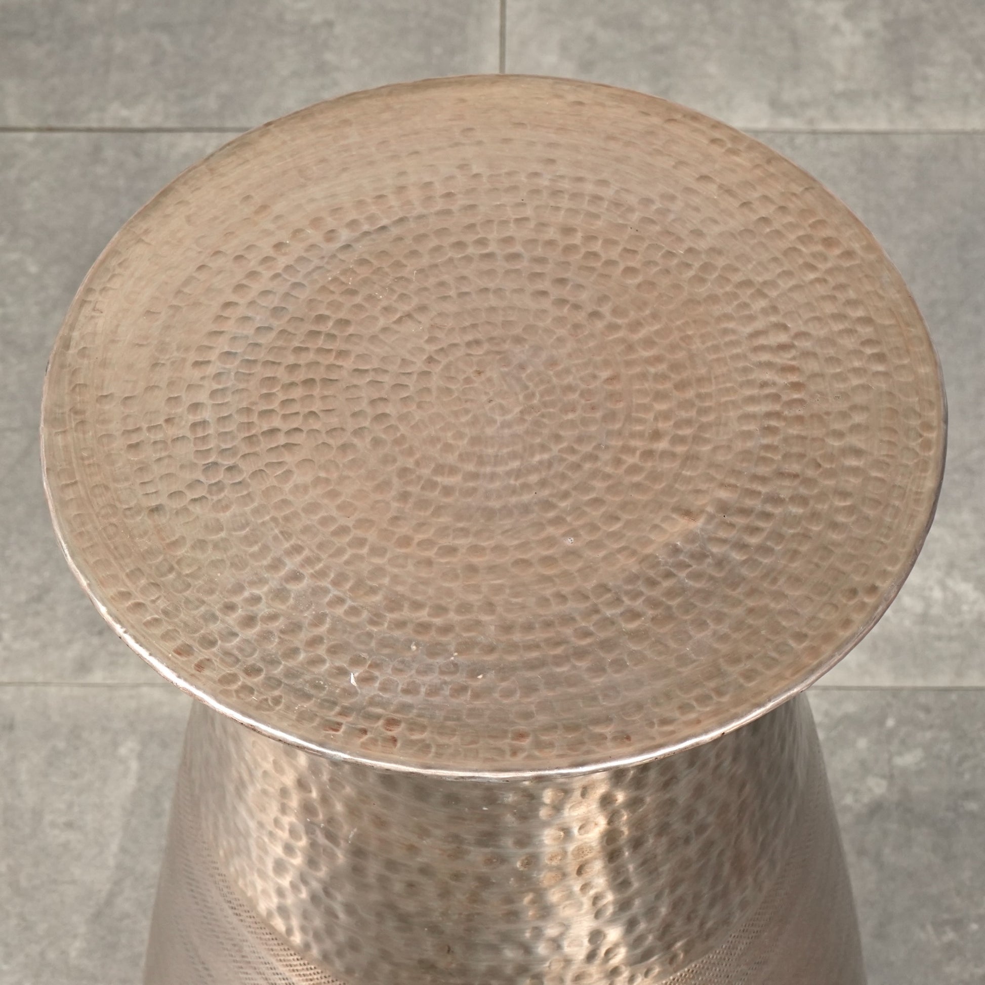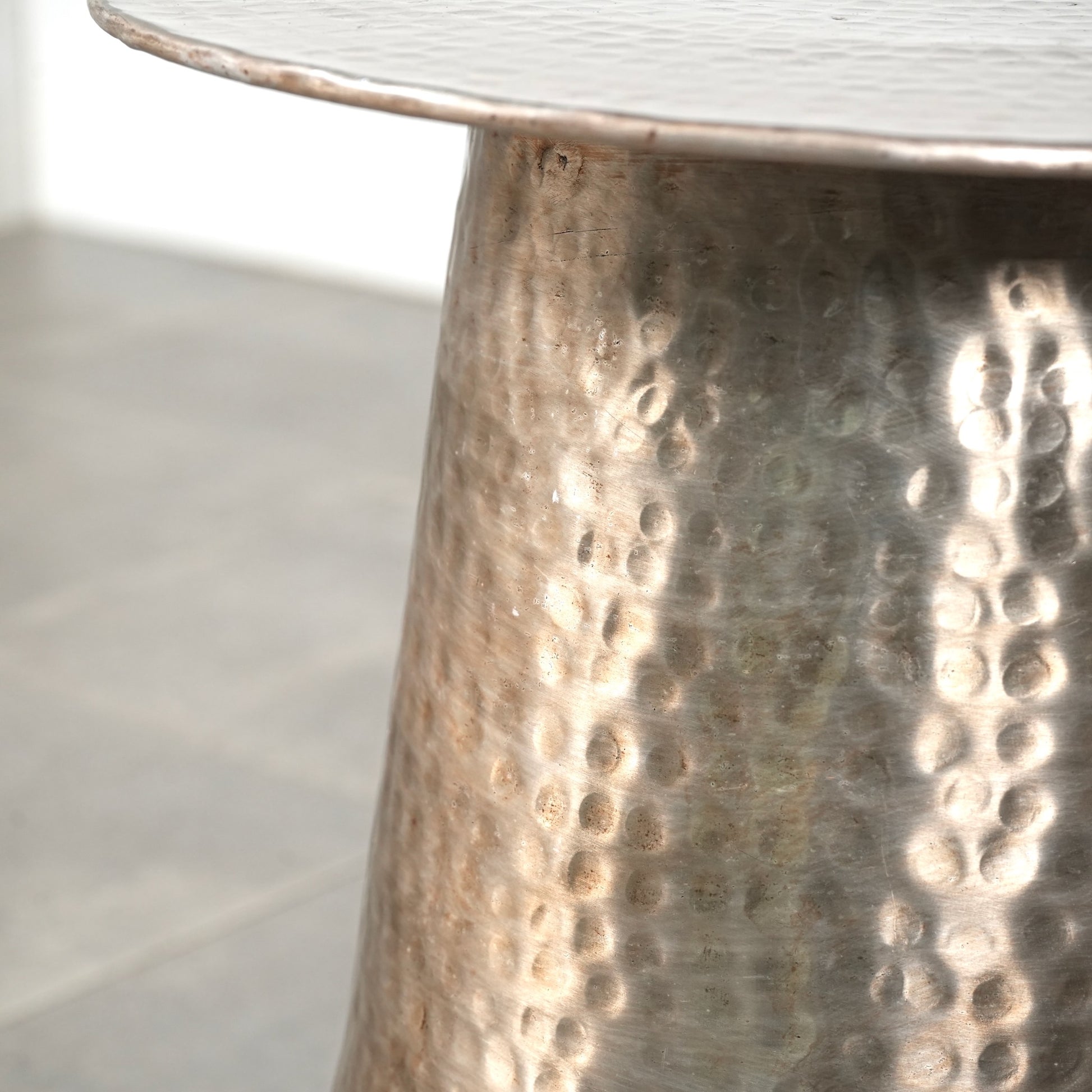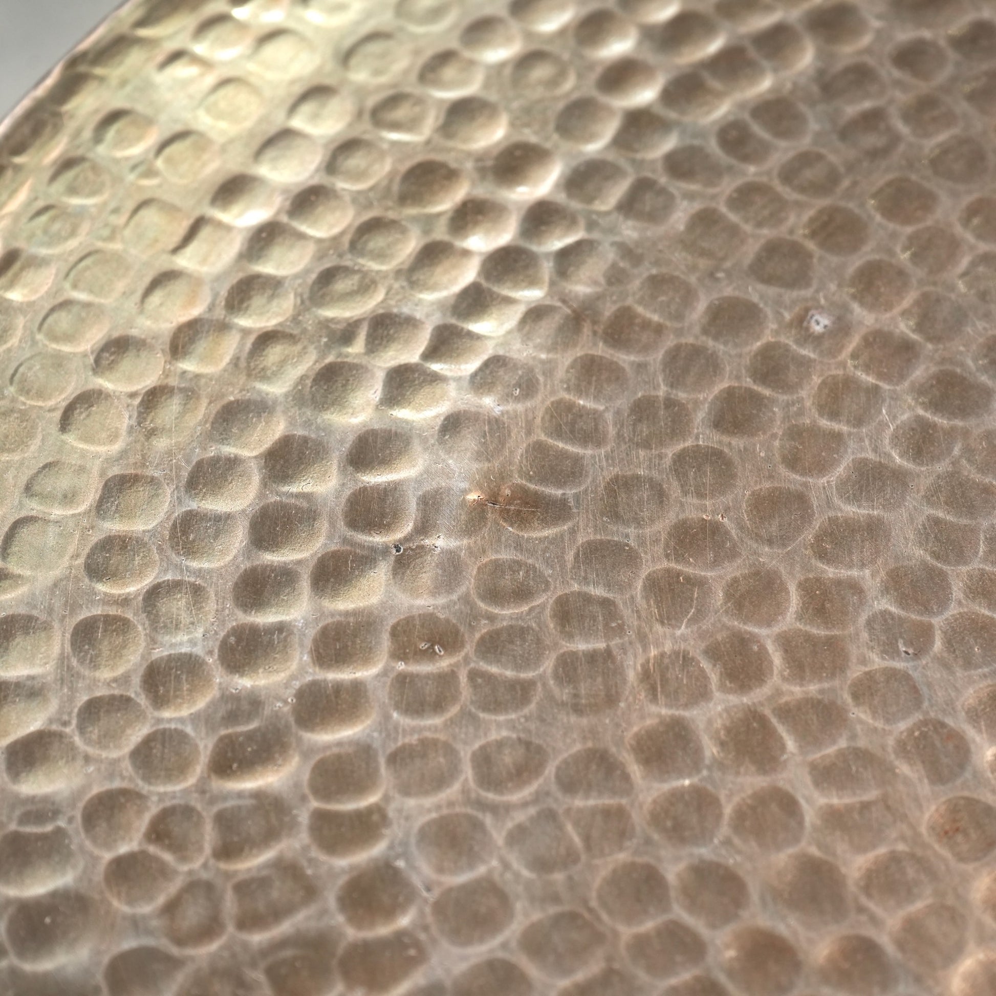 表面には細かな打ち出し加工が施されており、光の当たり方によって陰影が生まれ、無機質になりすぎない豊かな表情を楽しめます。