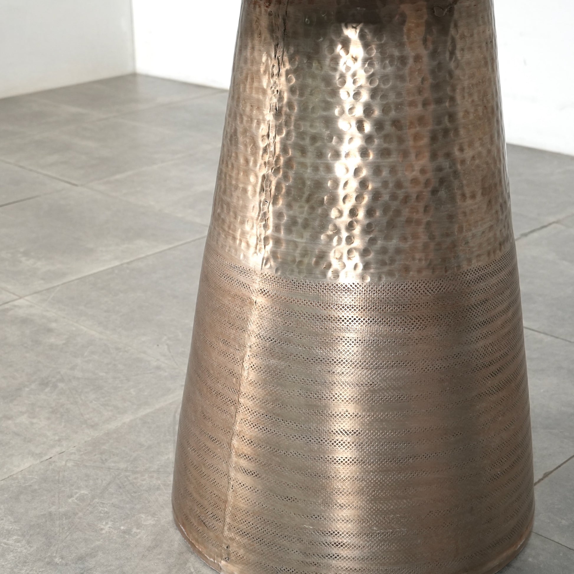 円錐状に広がる安定感のあるフォルムに、職人の手作業を感じさせる凹凸のある表情が印象的な一台です。
