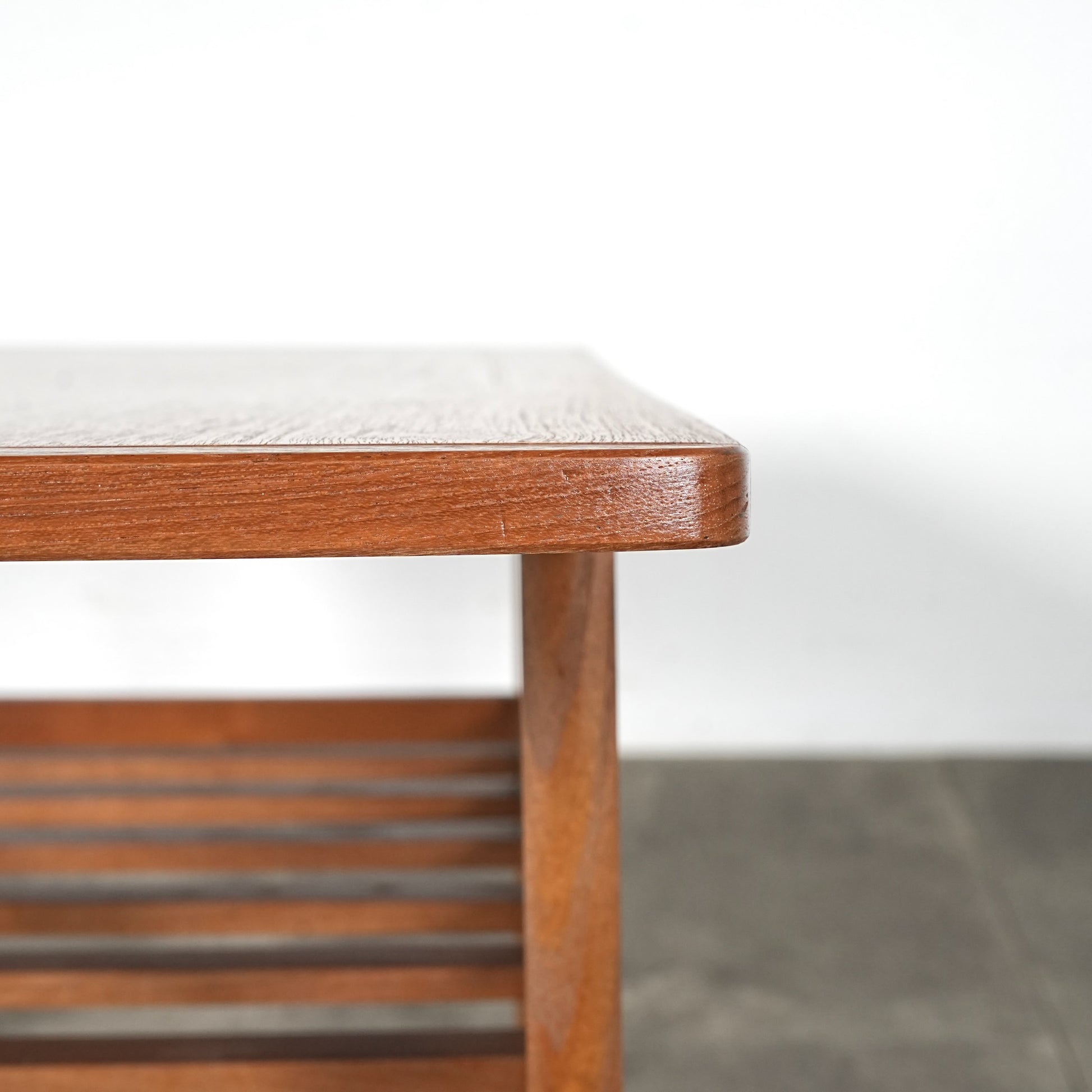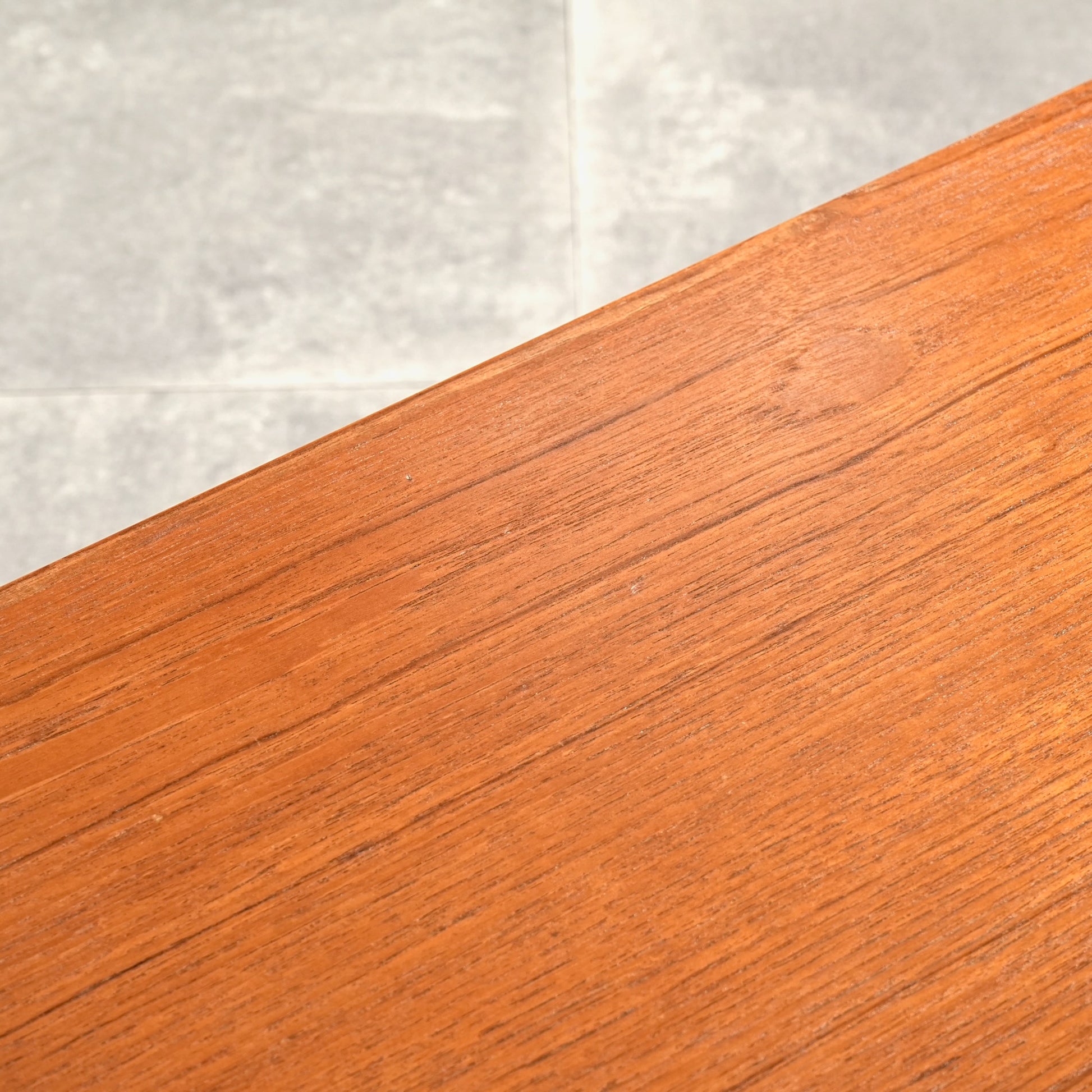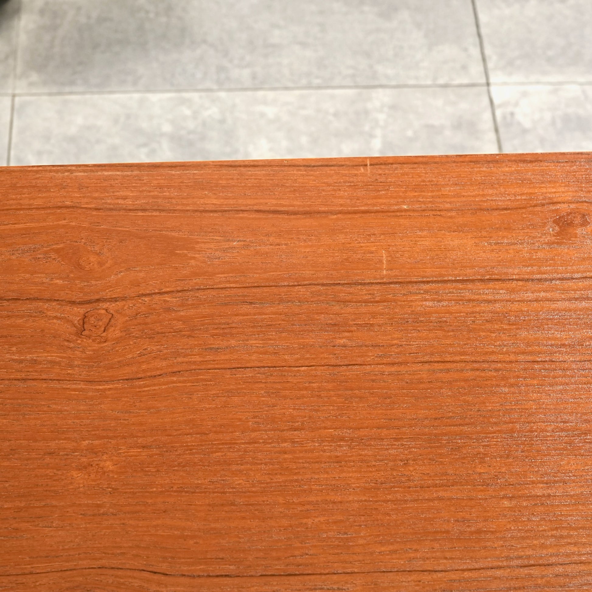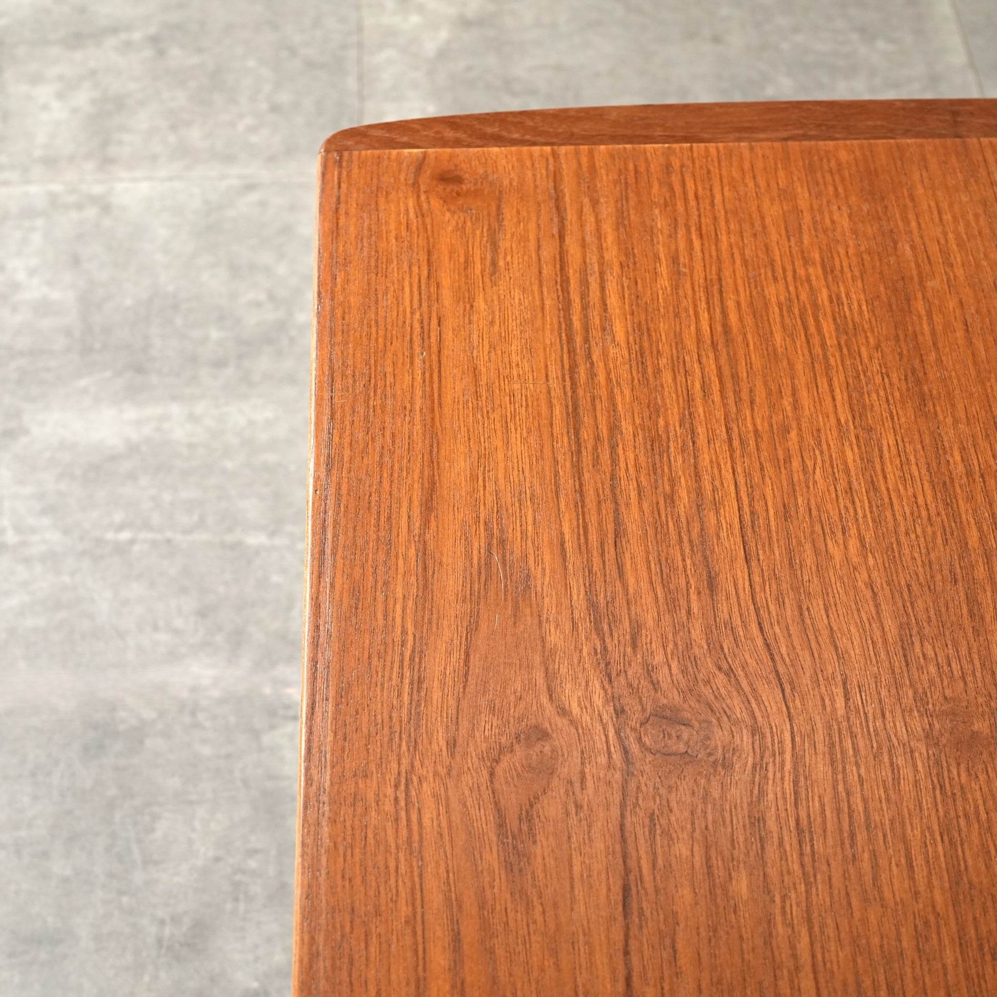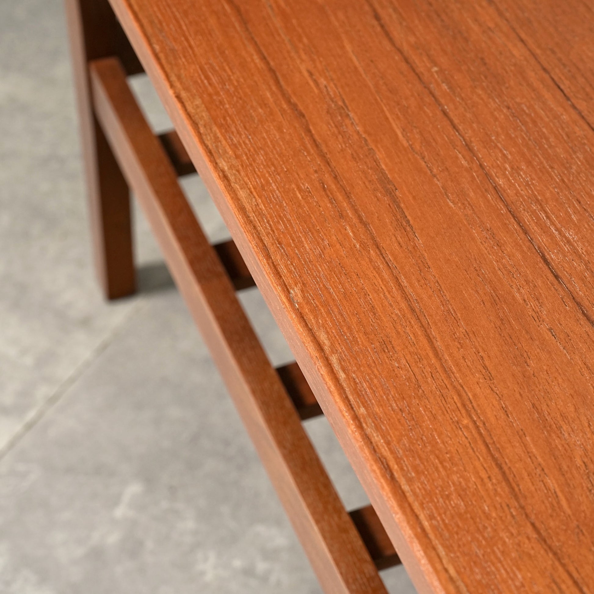 良質なチーク材ならではの温かみある木肌と美しい木目が際立つ天板は、シンプルながらも上質な存在感を放ちます。