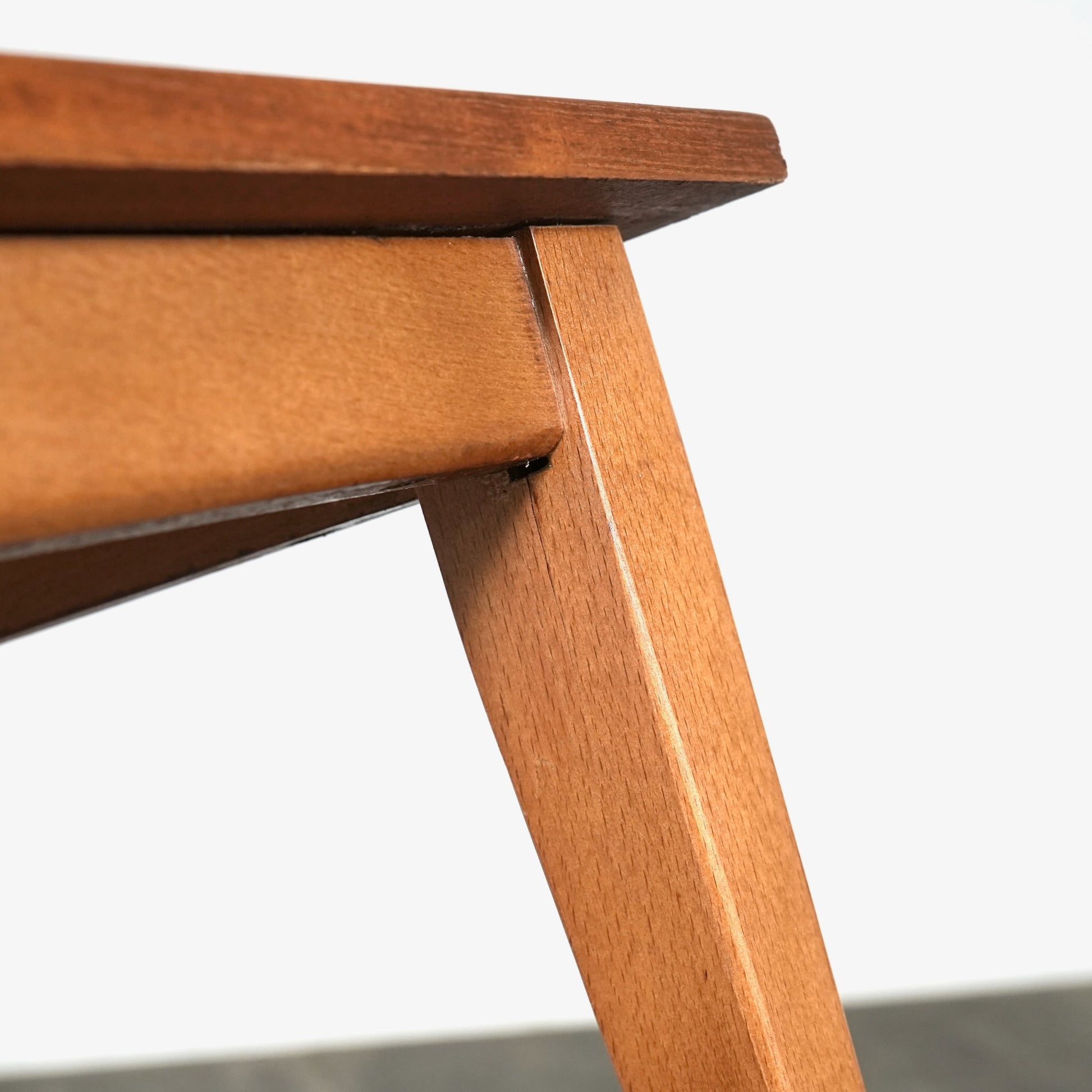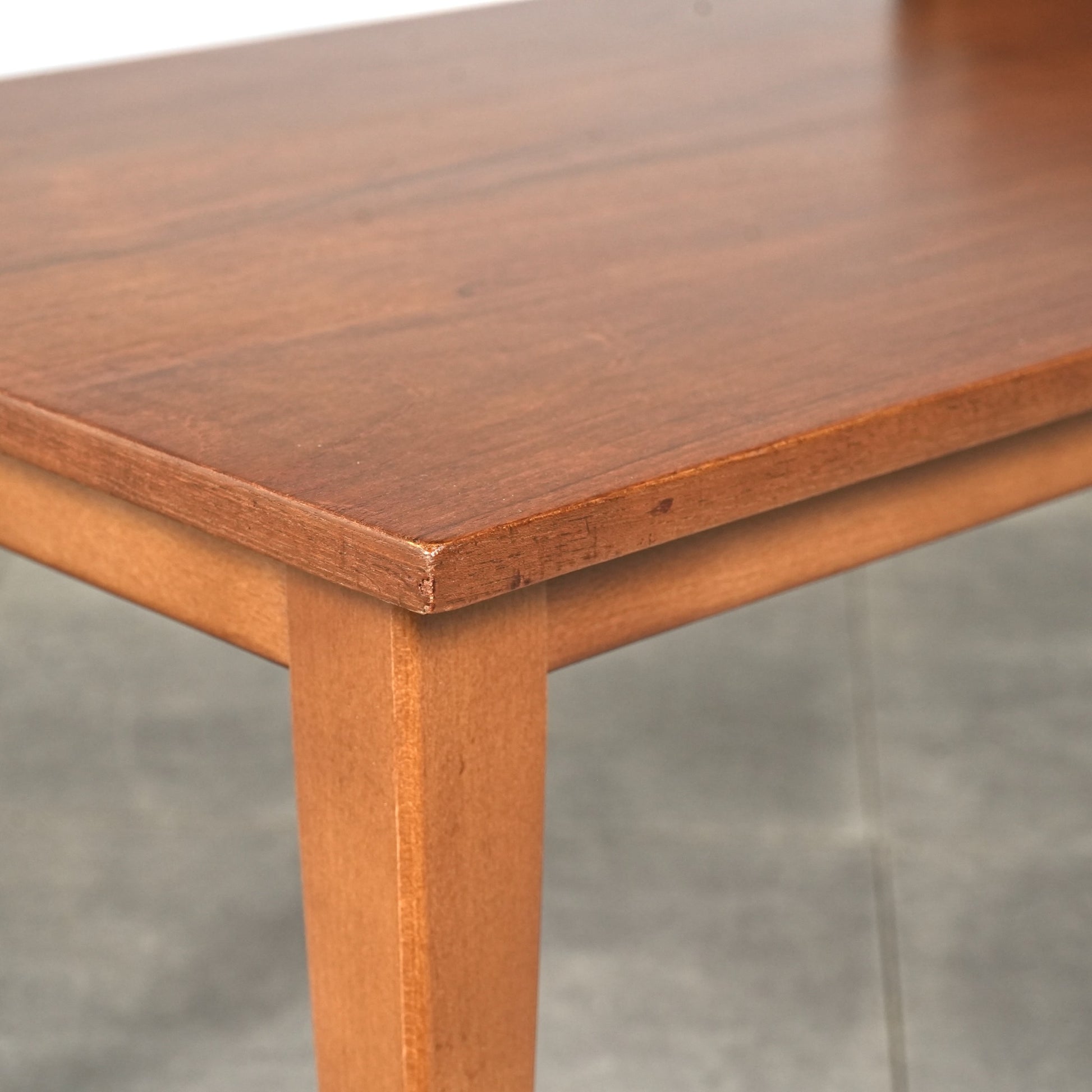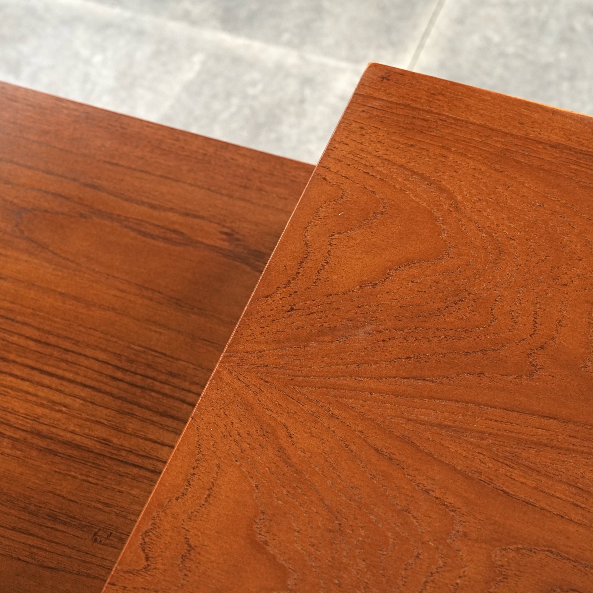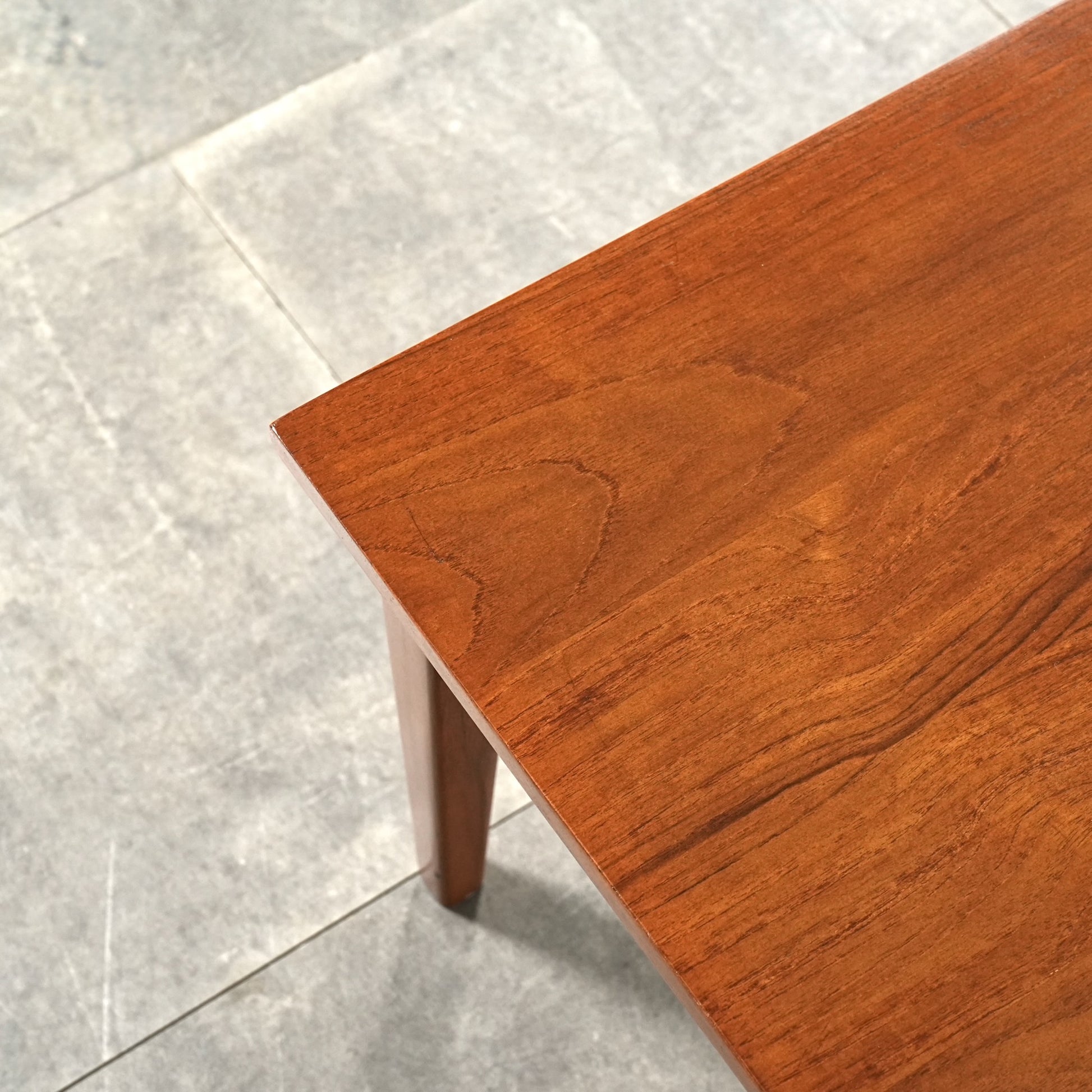 良質なチーク材の質感が際立つミニマルなデザインで、脚部のビーチ材とのコントラストも絶妙なバランス。