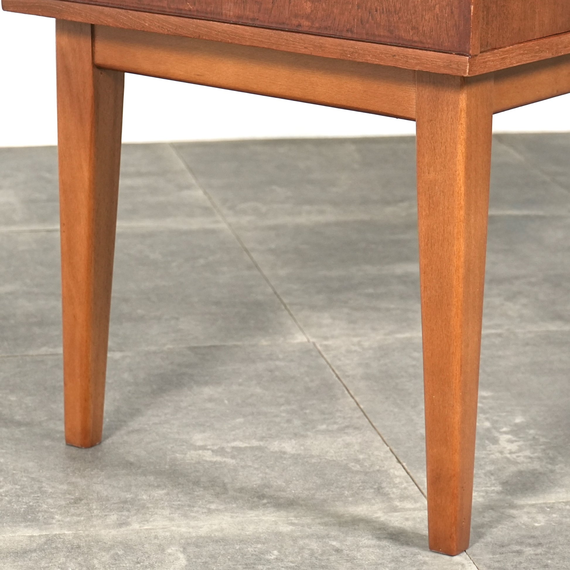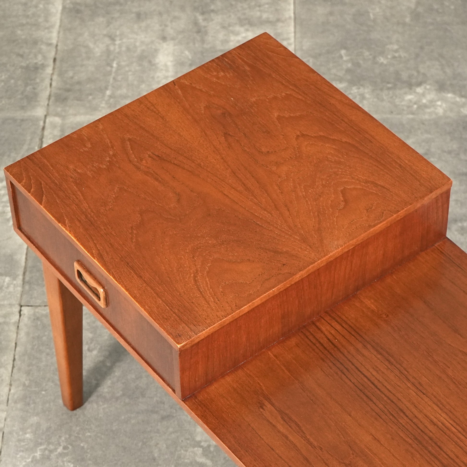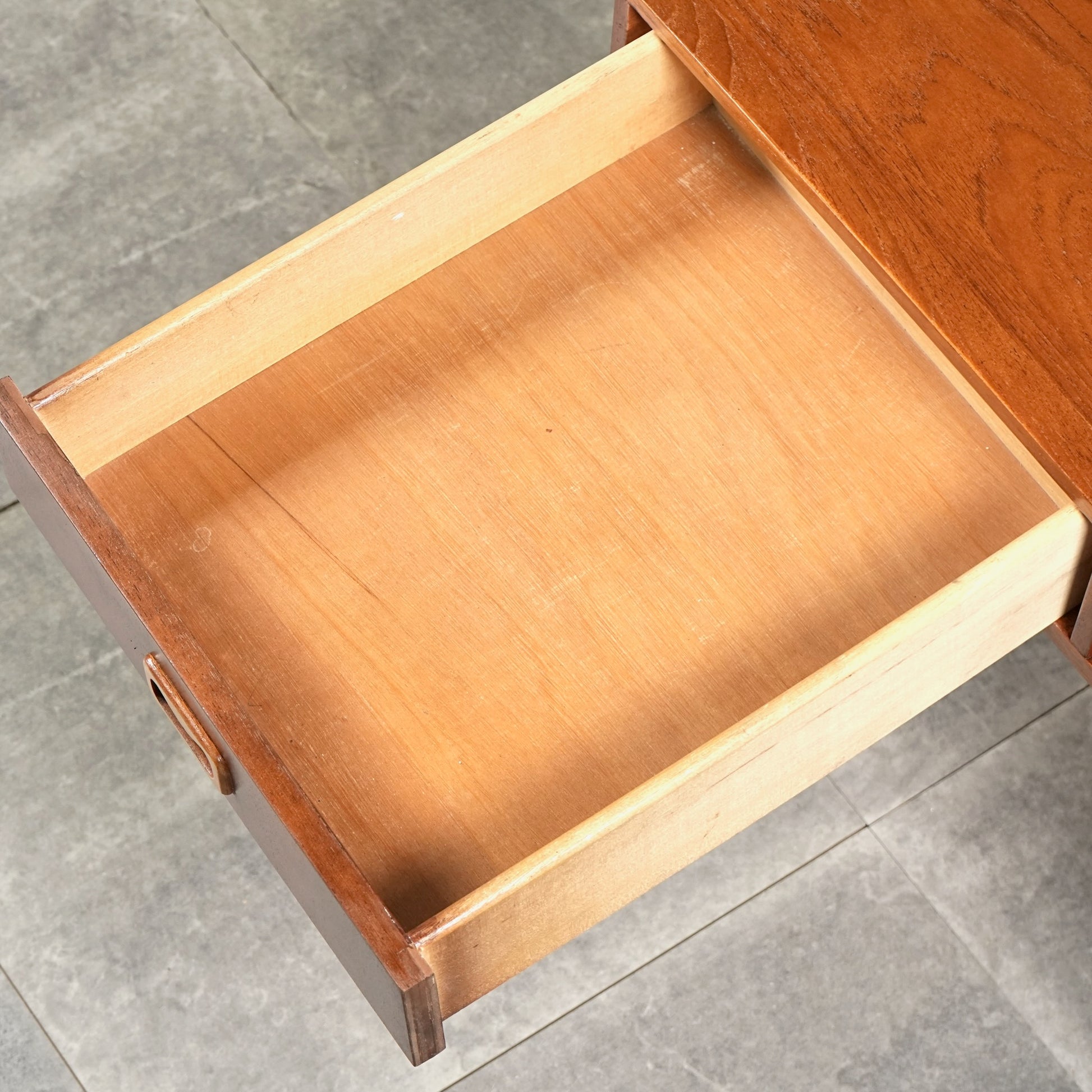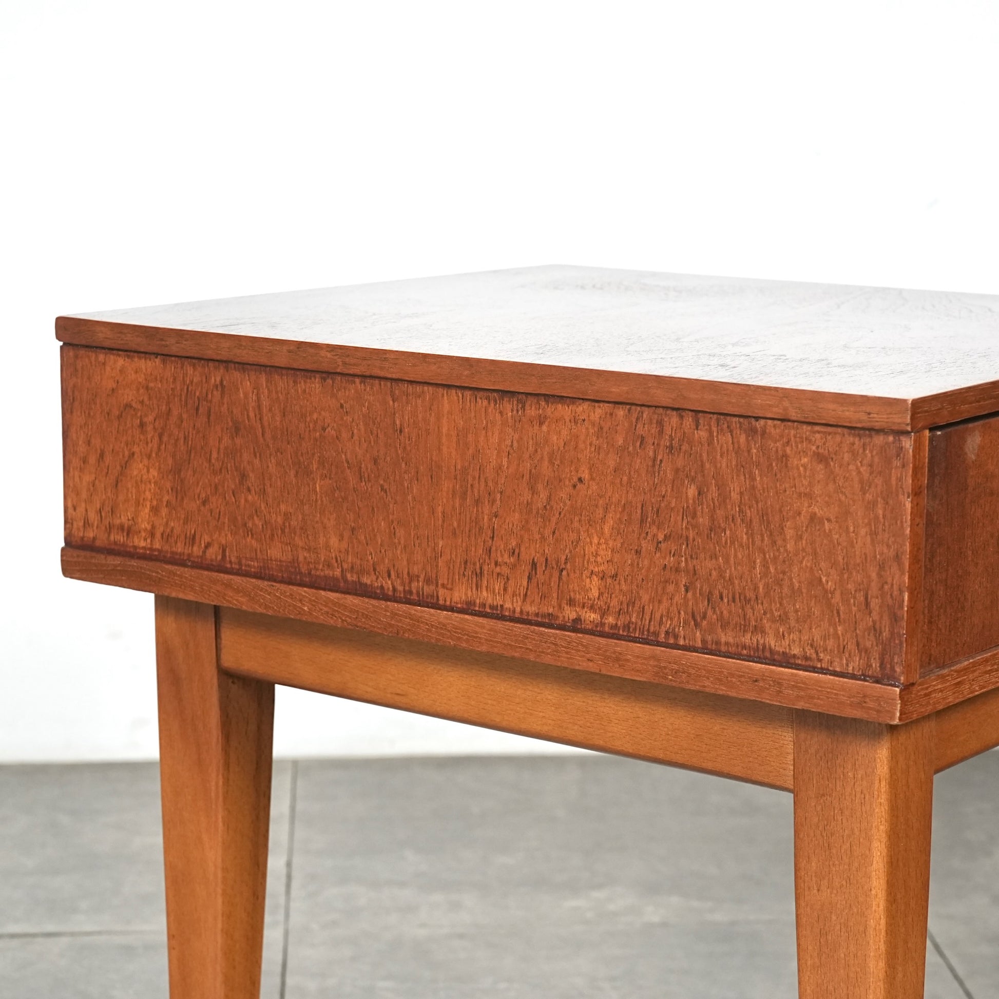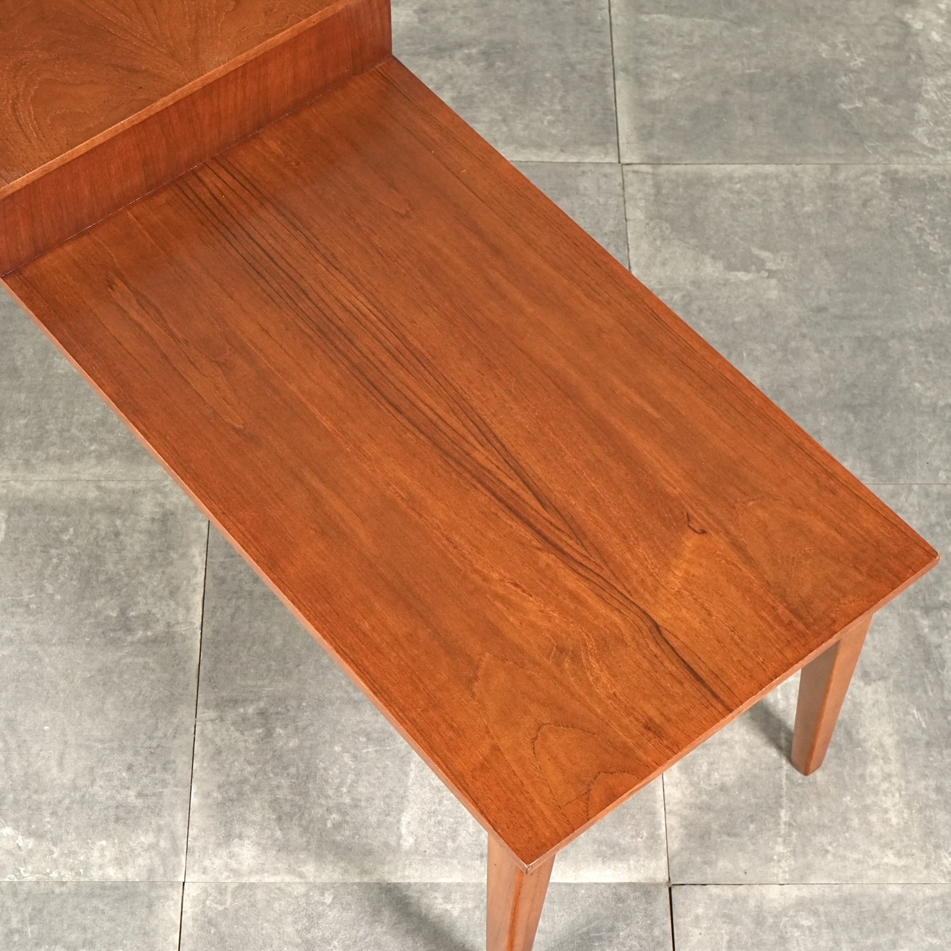 良質なチーク材の質感が際立つミニマルなデザインで、脚部のビーチ材とのコントラストも絶妙なバランス。