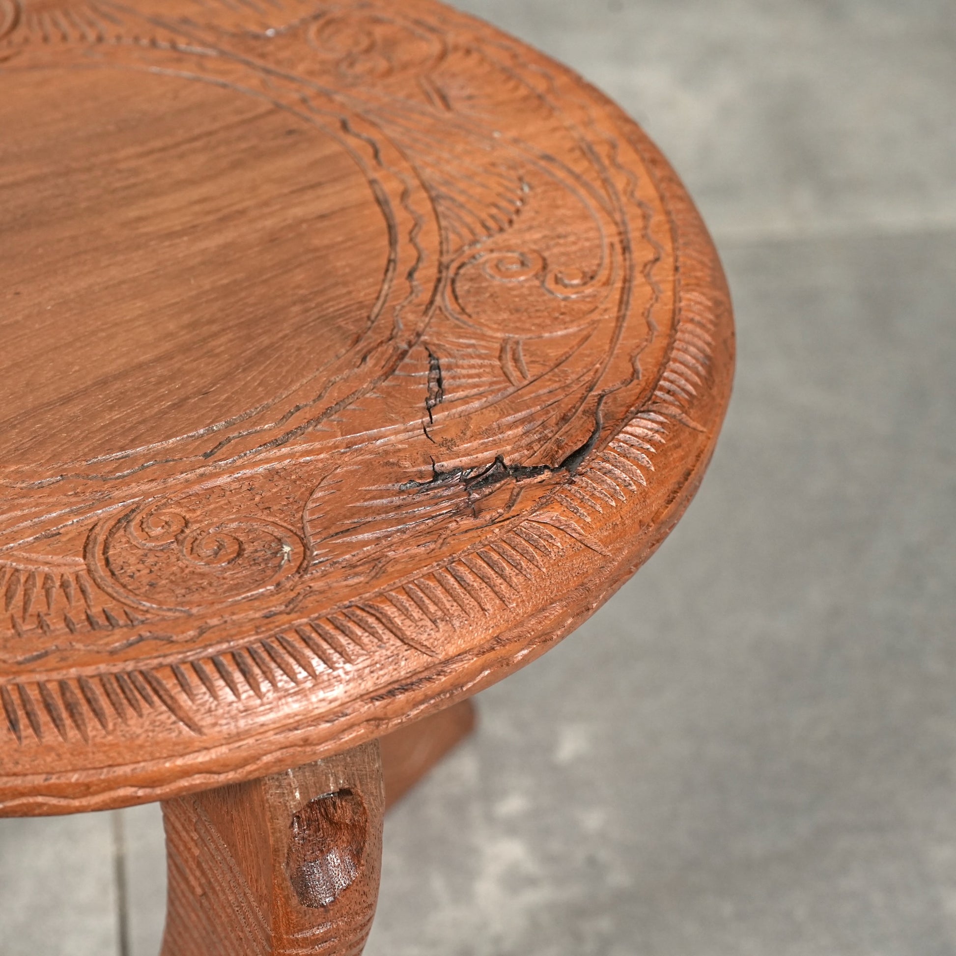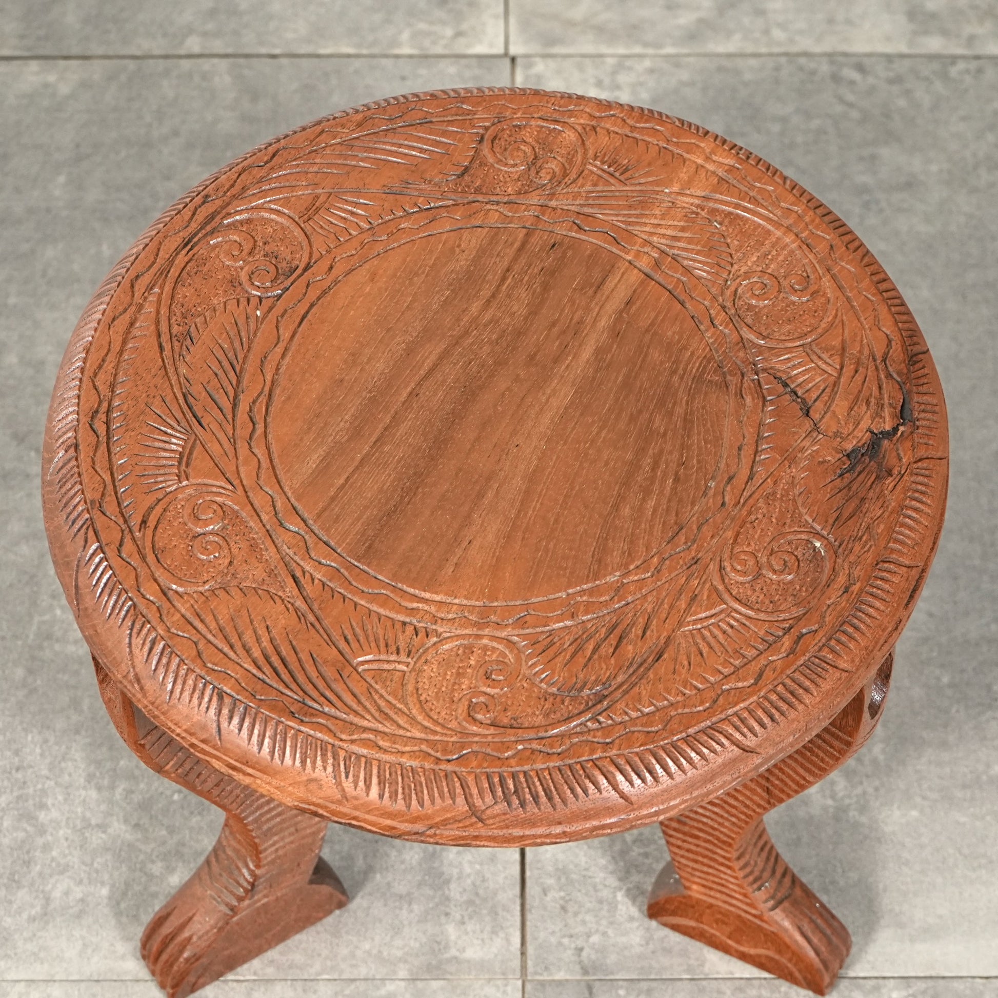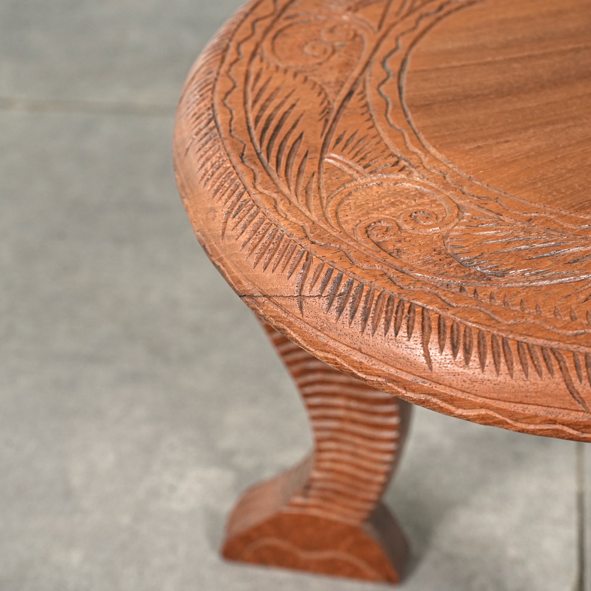 無垢材を贅沢に削り出して作られており、随所に施された美しい装飾が手仕事ならではの温かみと存在感を感じさせます。