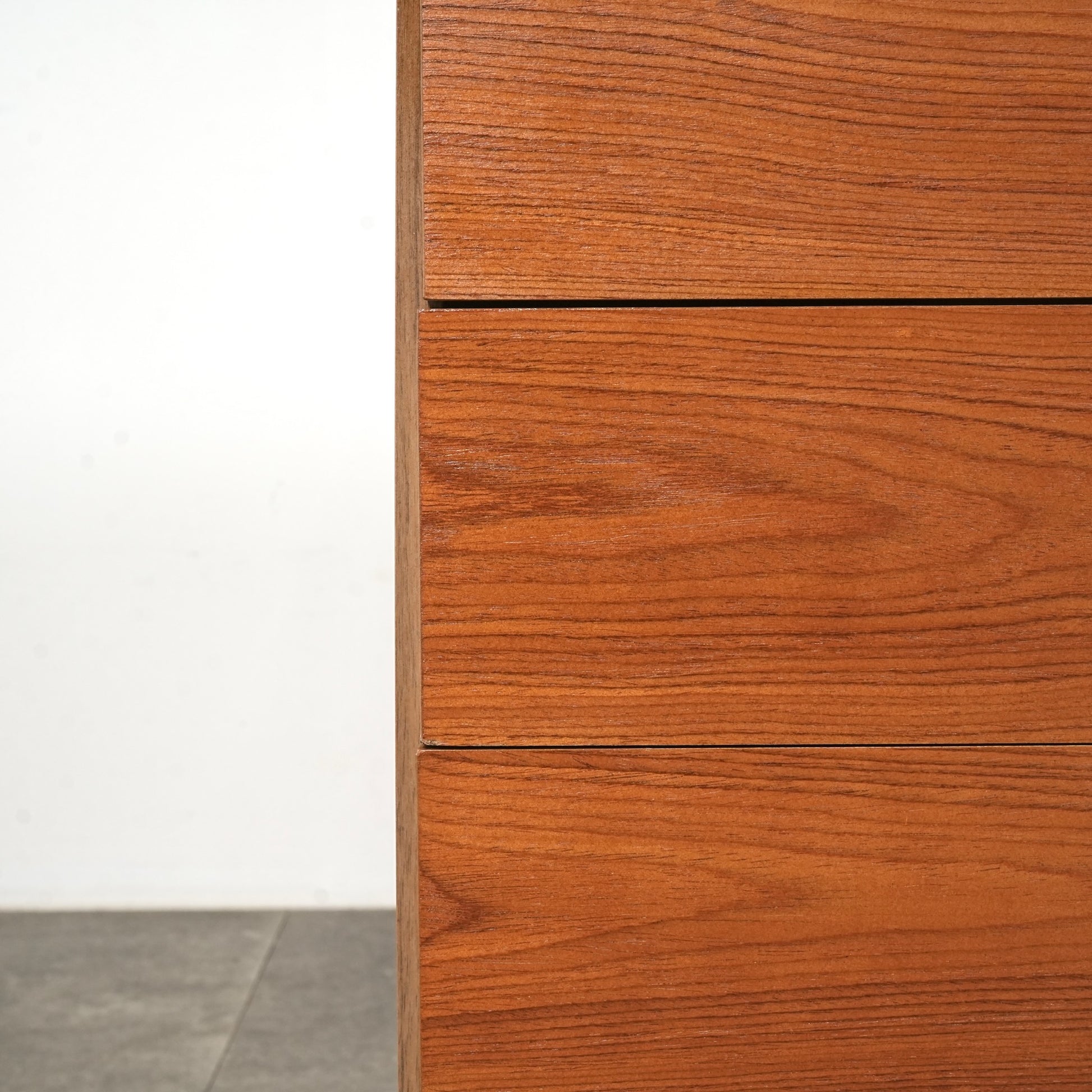 現代の住環境にすっと馴染んでくれる明るいトーン中に、シャープなフォルムの取手がアクセントになったデザイン。
