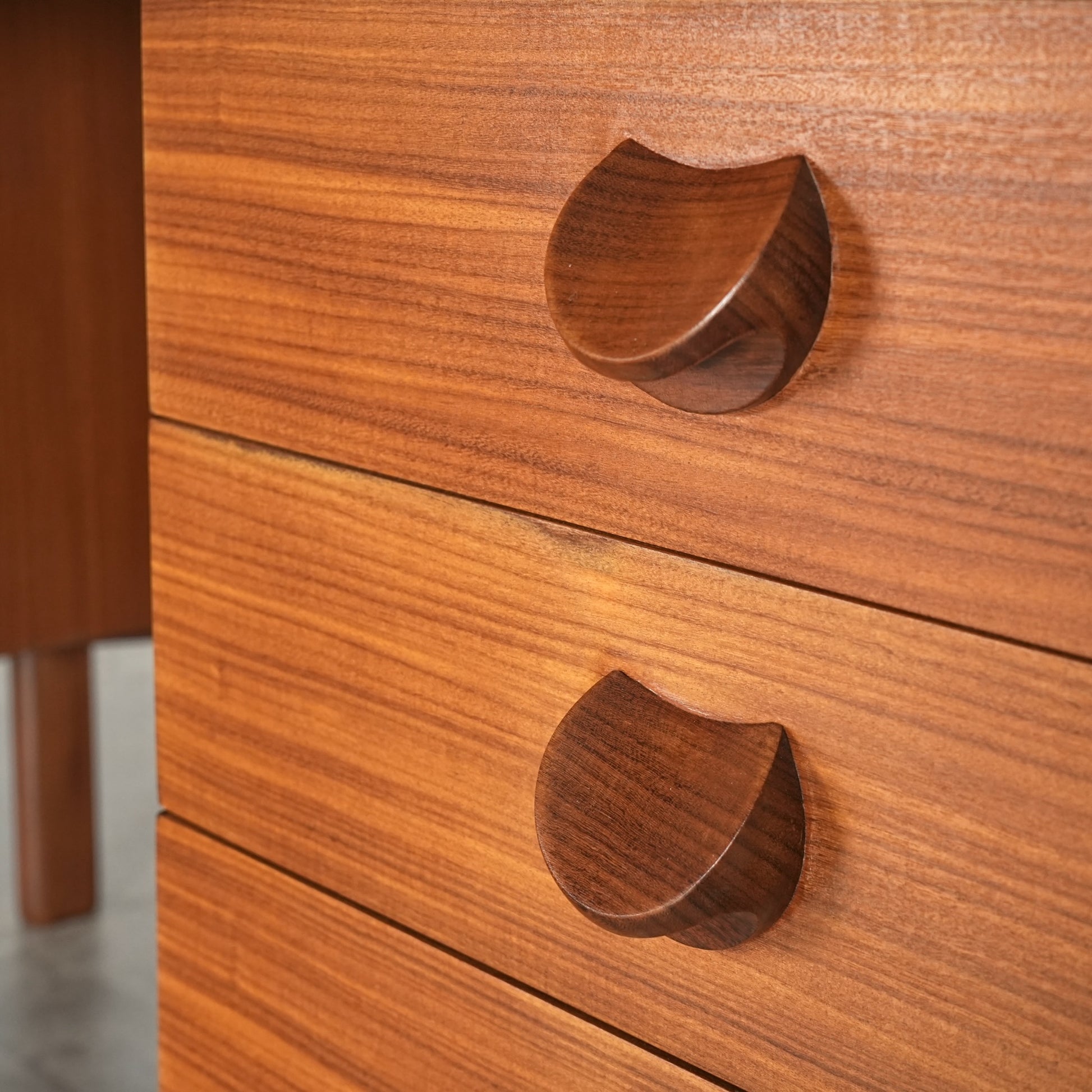 高品質なチーク材の温かみと美しい木目が際立つシンプルかつバランスの良いデザインで、シンプルさの中に削り出しの取手が良いアクセントなっており、ミニマルなデザインを得意としていたWhite & Newtonらしさがギュッと詰まったアイテムです。