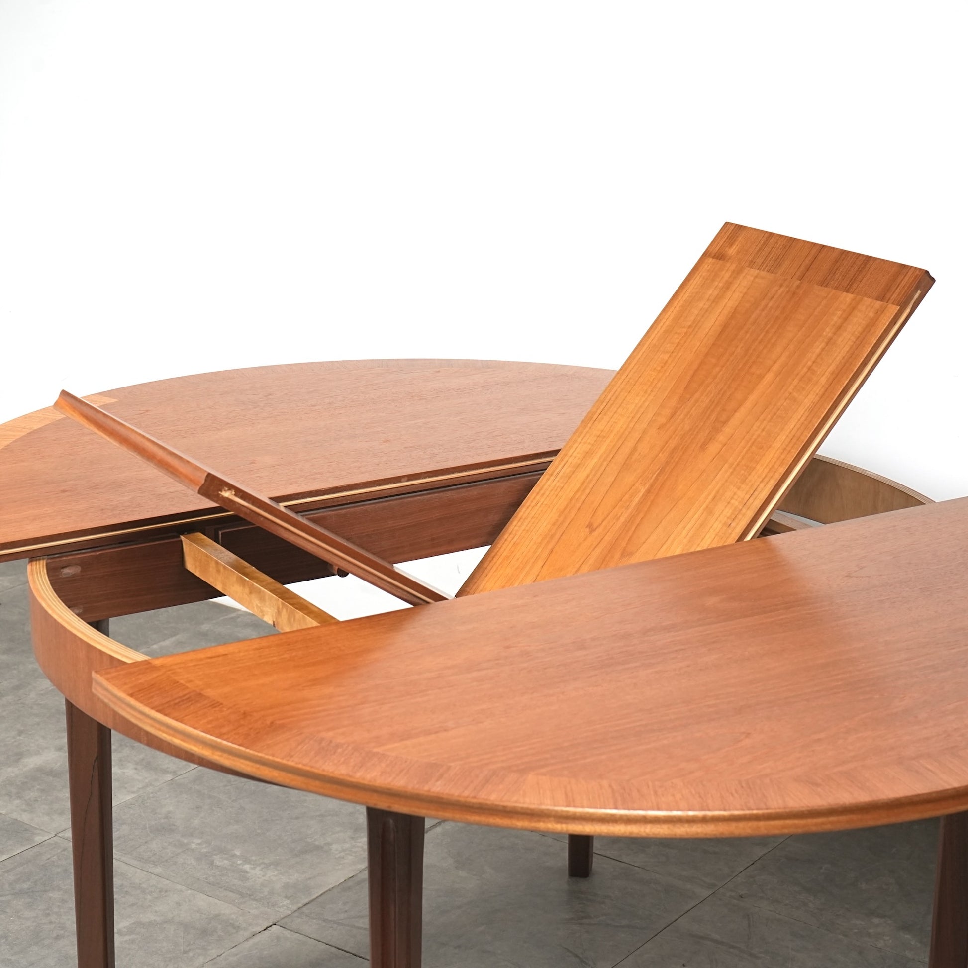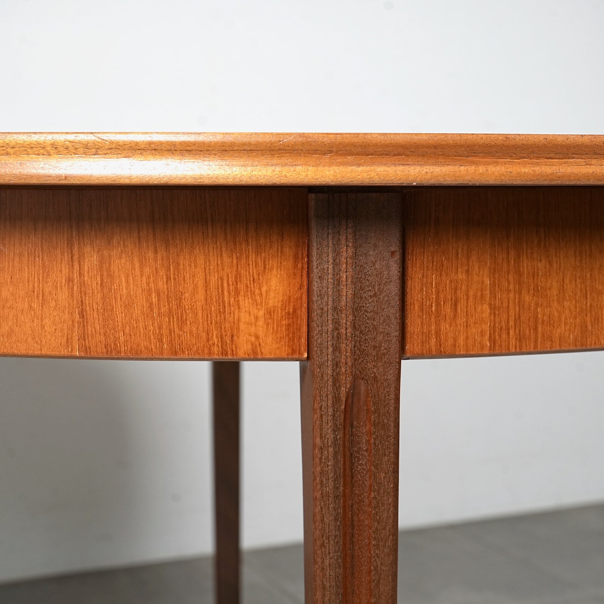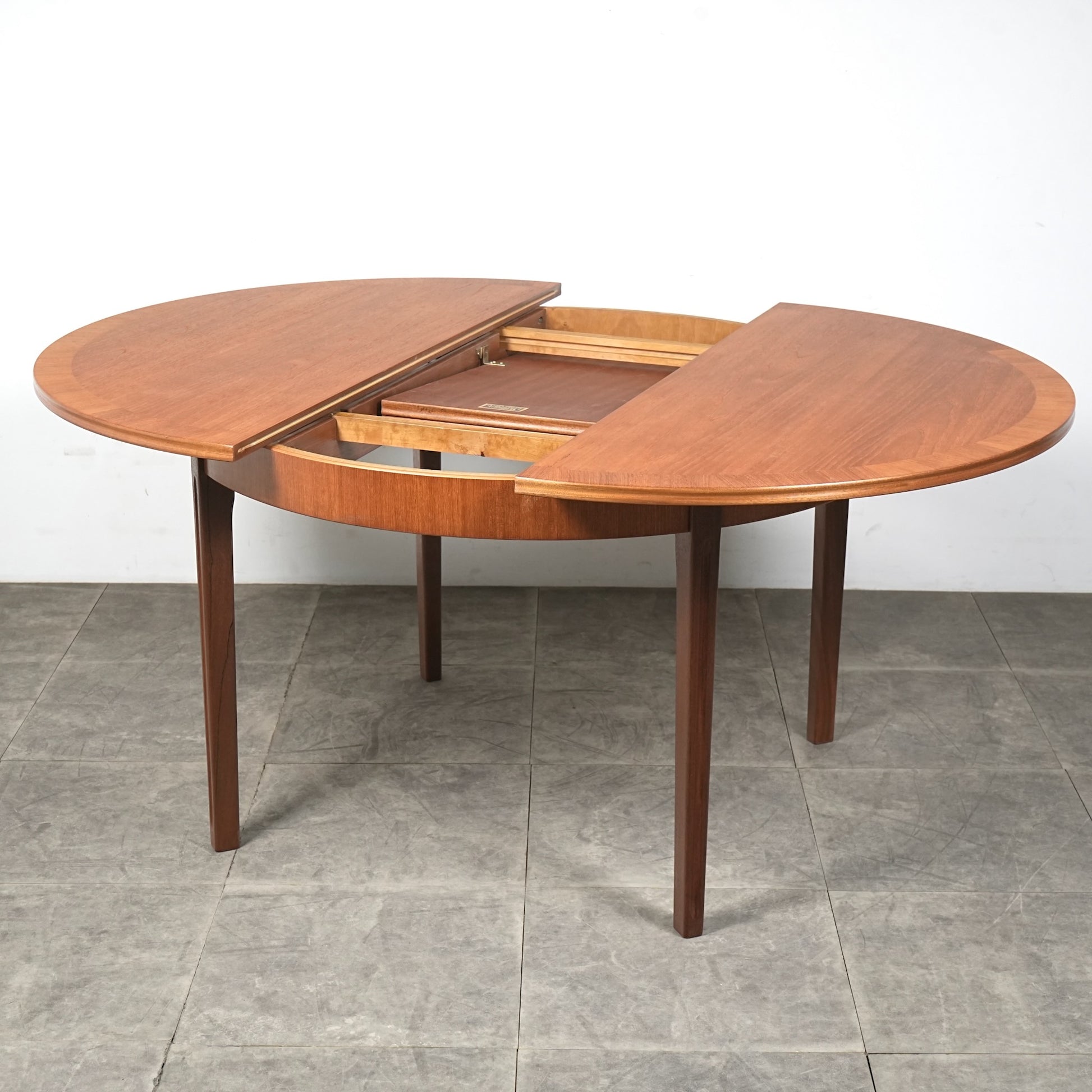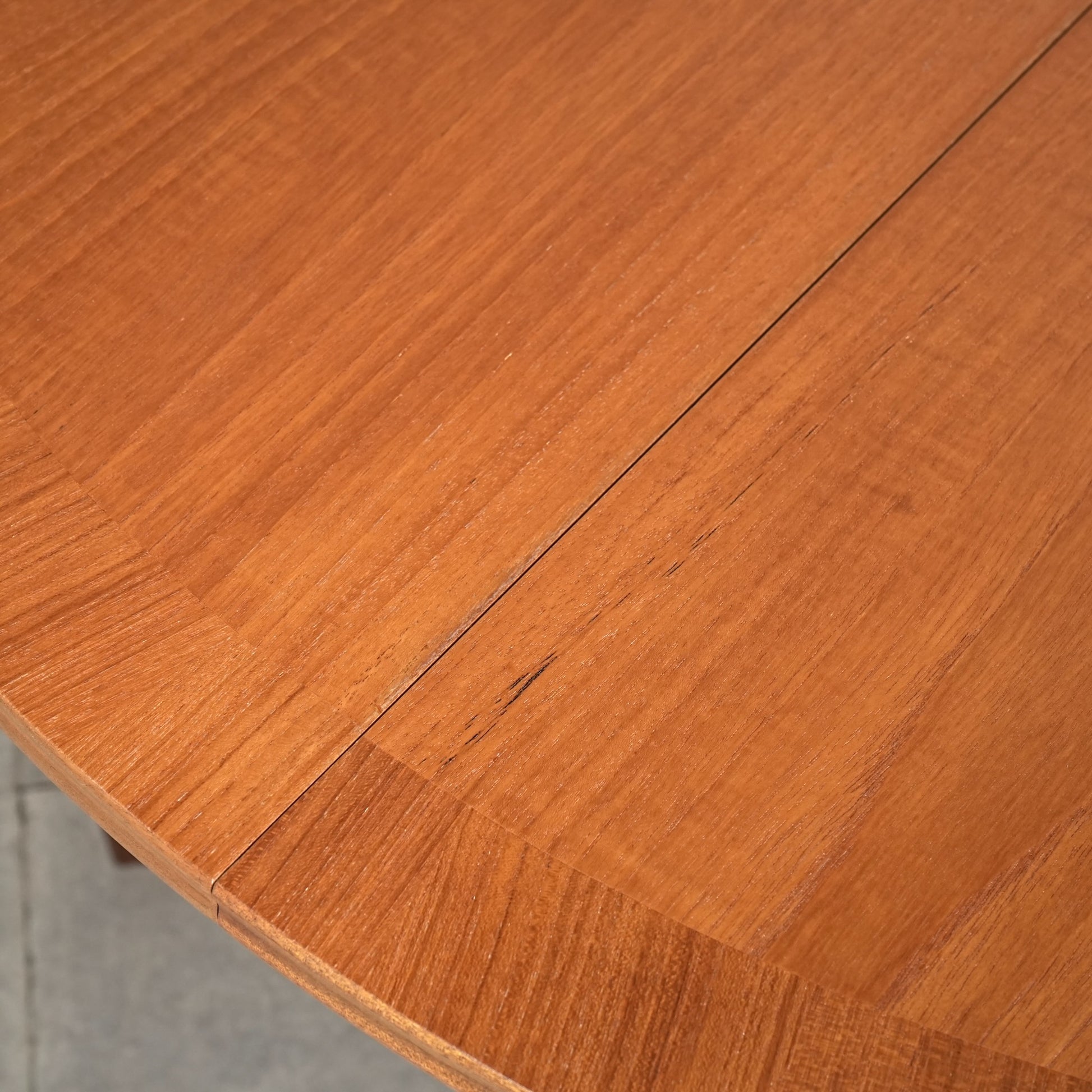 上質なチーク材を使用しており、この時代のテーブルには標準装備とも言えるエクステンション(拡張)機能を備えており、4人掛けサイズ→6人掛けサイズへと簡単に拡張できるのが最大の魅力。 来客時などのシーンで大活躍してくれます。