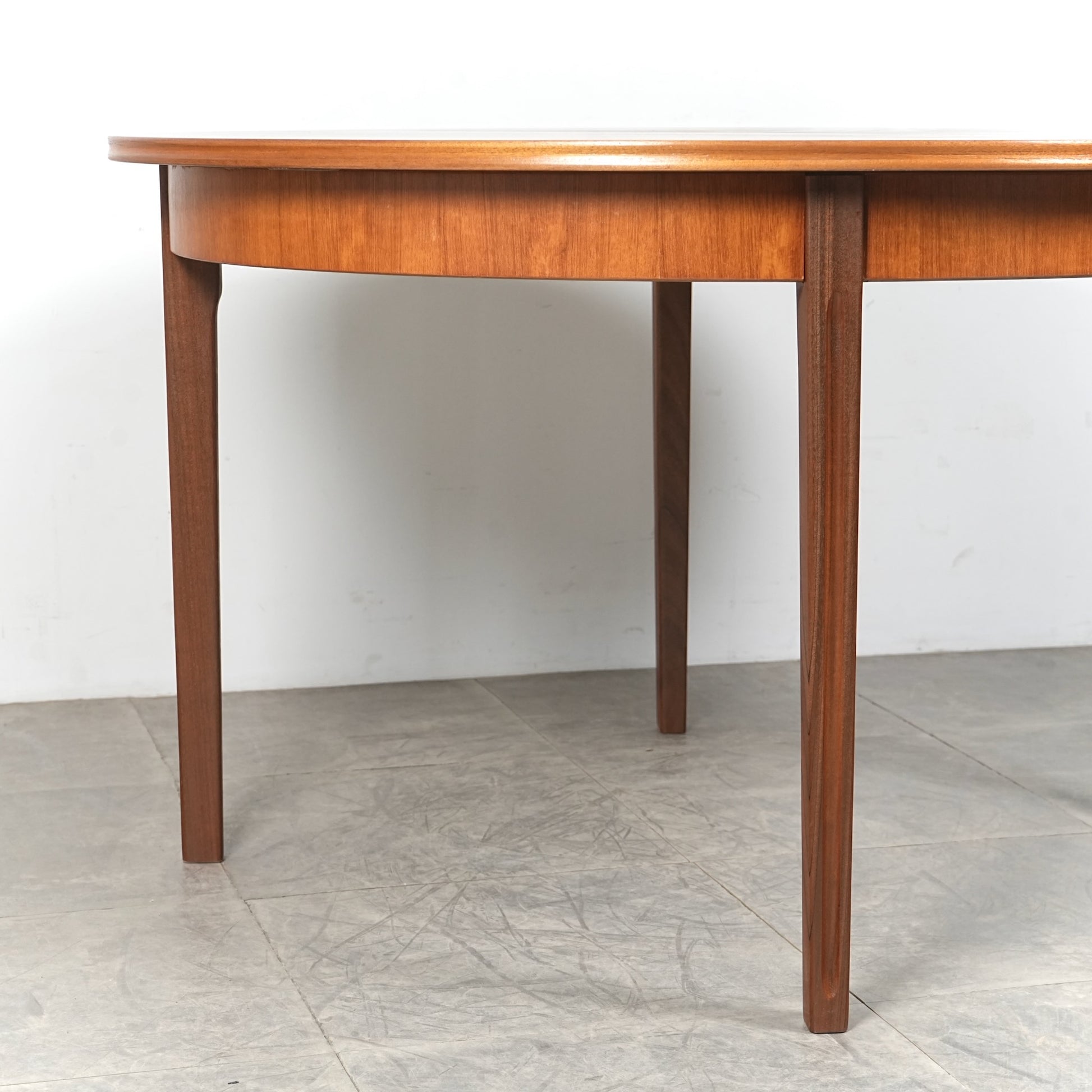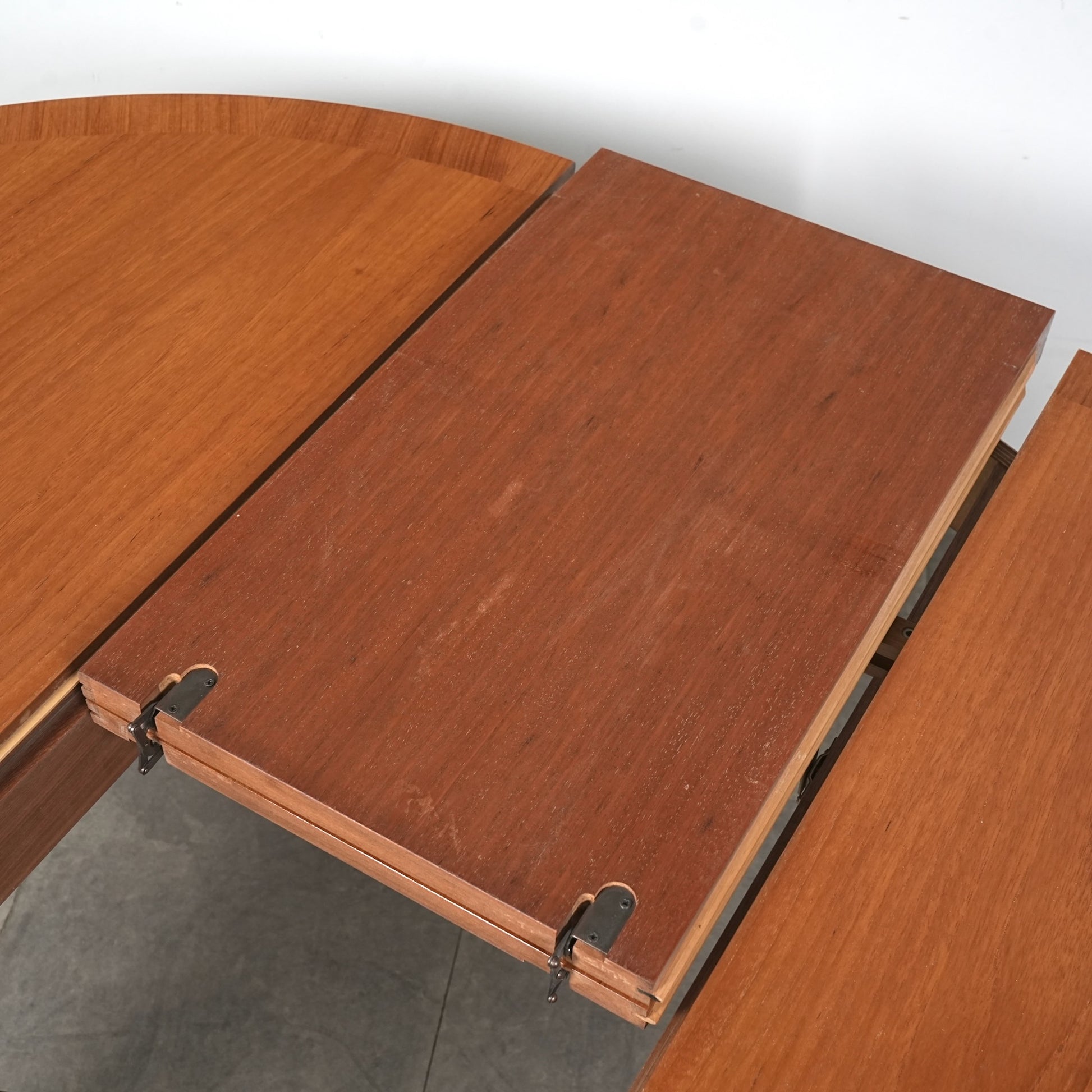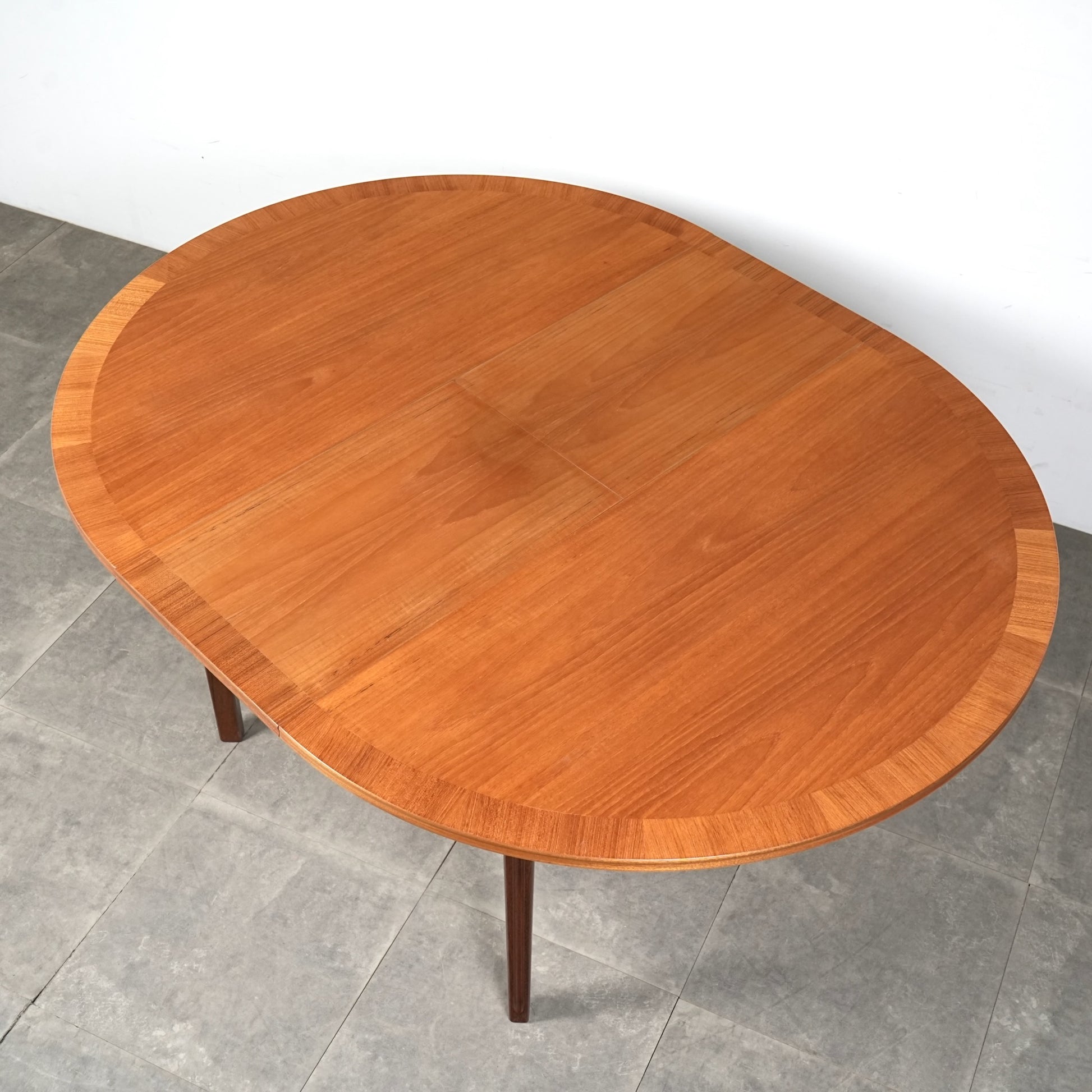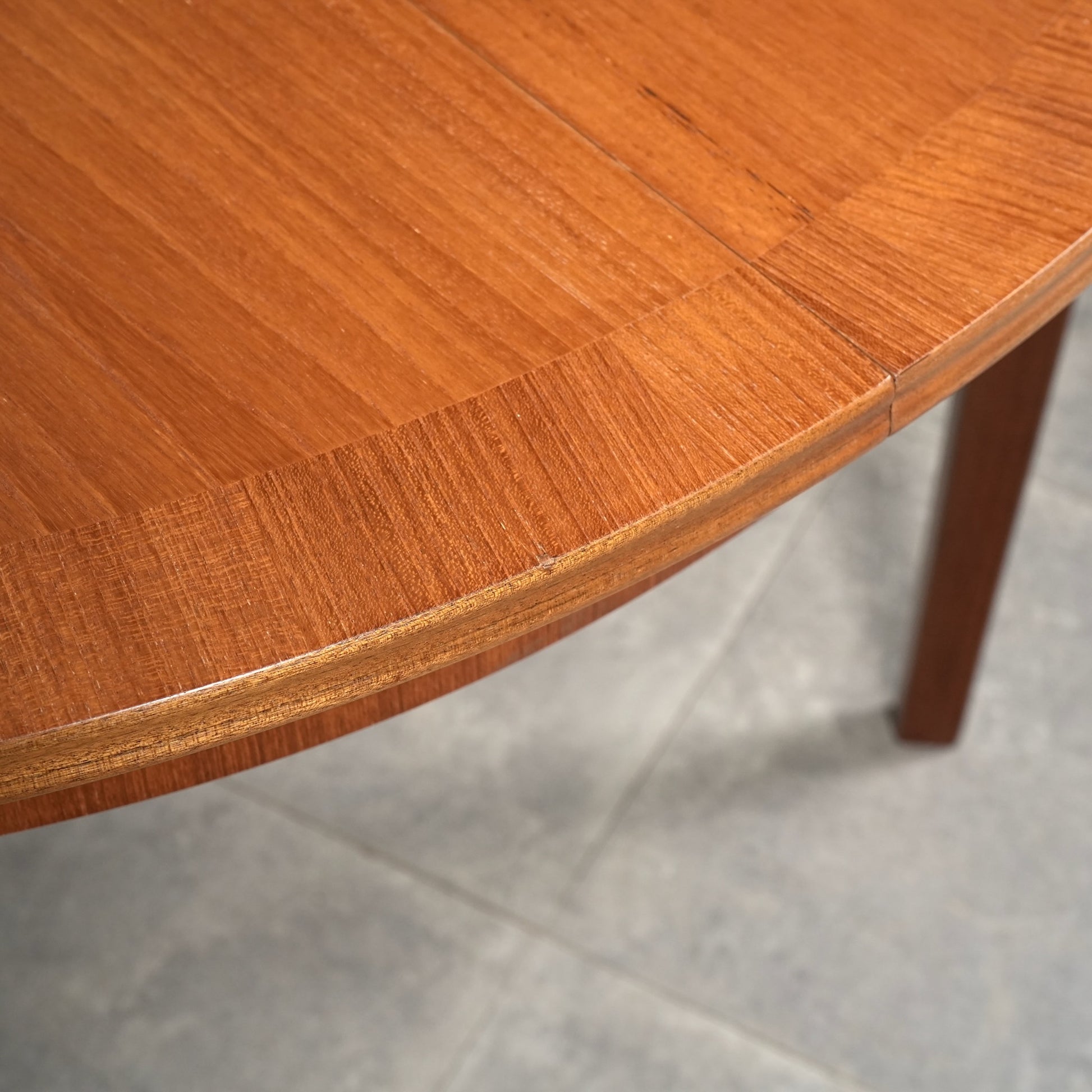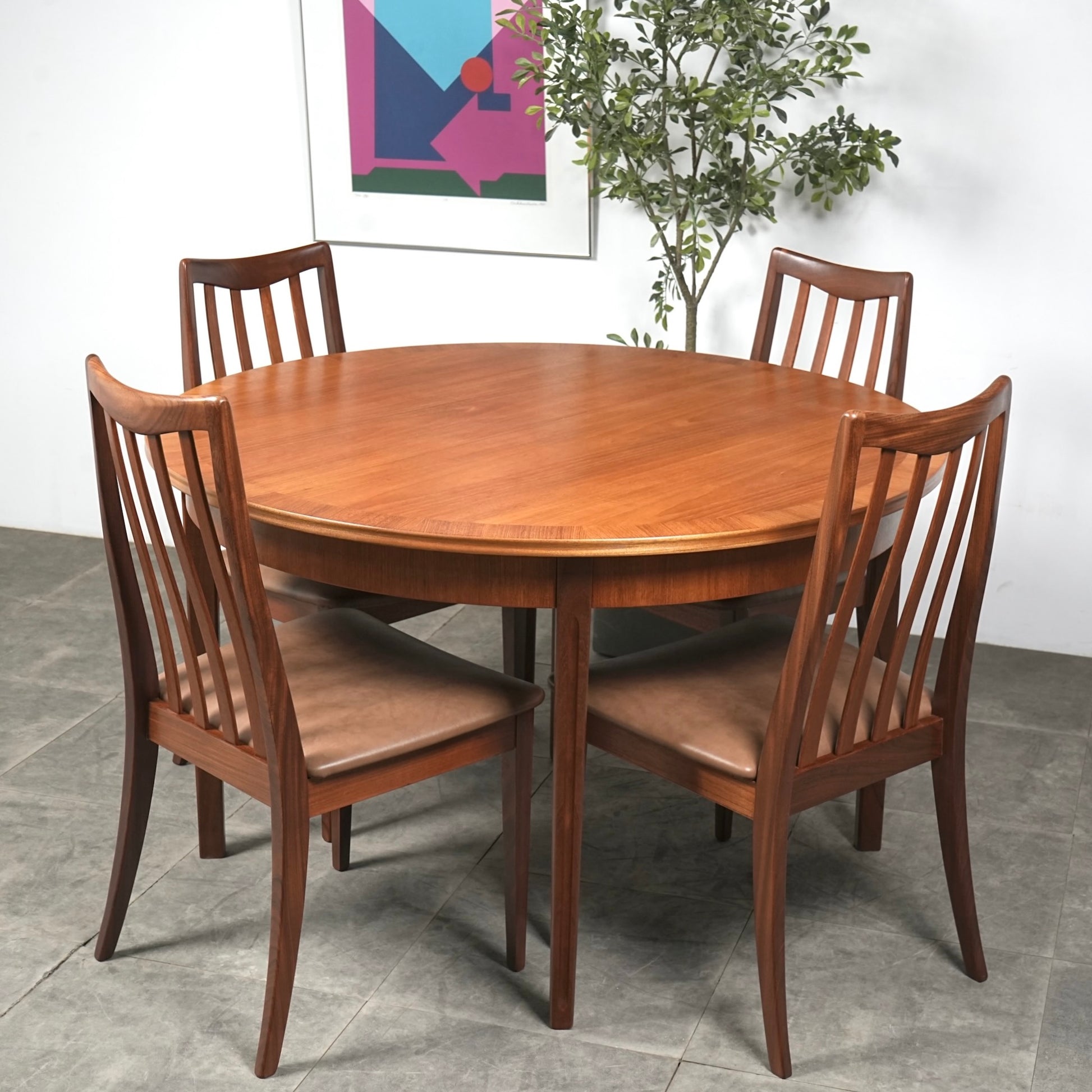 上質なチーク材を使用しており、この時代のテーブルには標準装備とも言えるエクステンション(拡張)機能を備えており、4人掛けサイズ→6人掛けサイズへと簡単に拡張できるのが最大の魅力。 来客時などのシーンで大活躍してくれます。