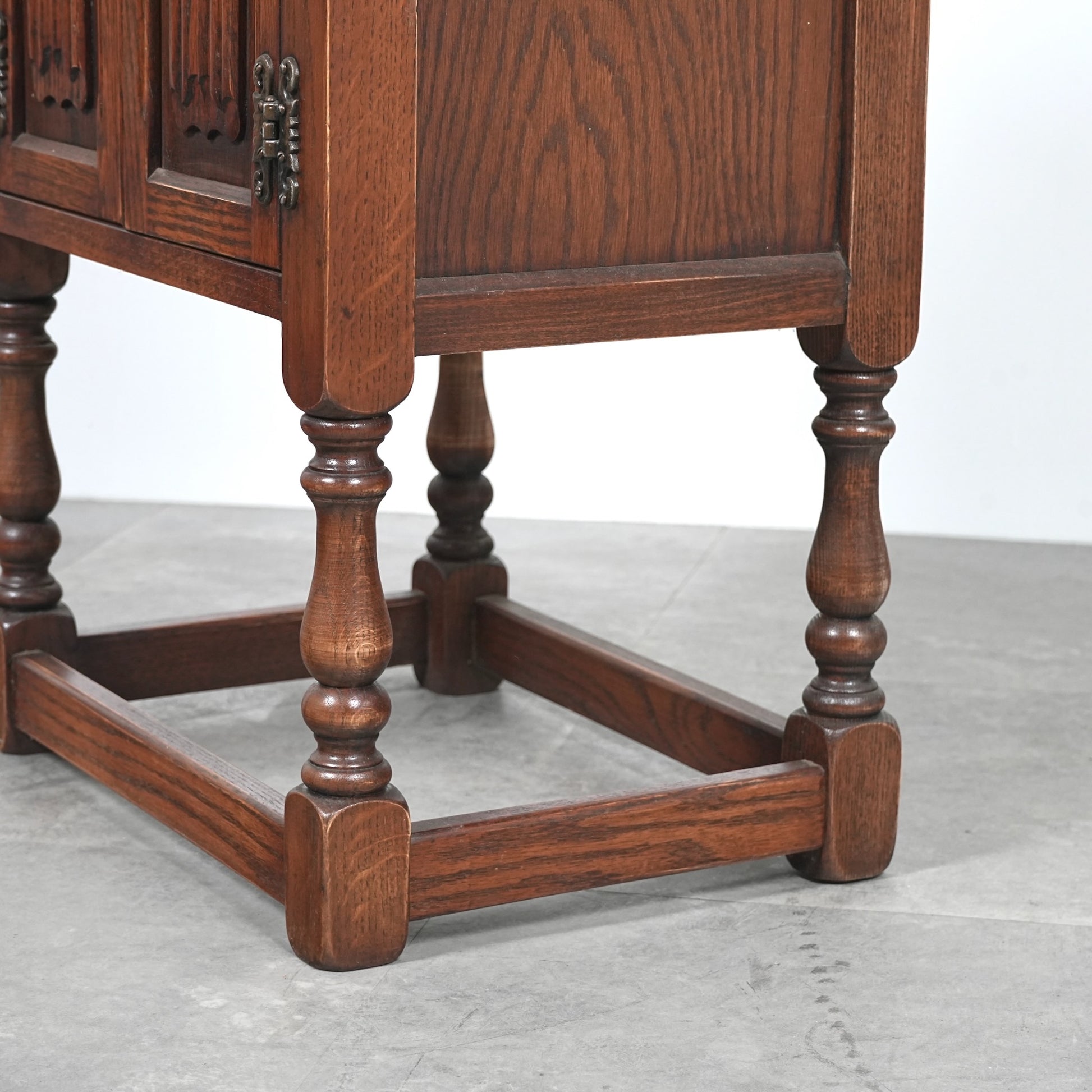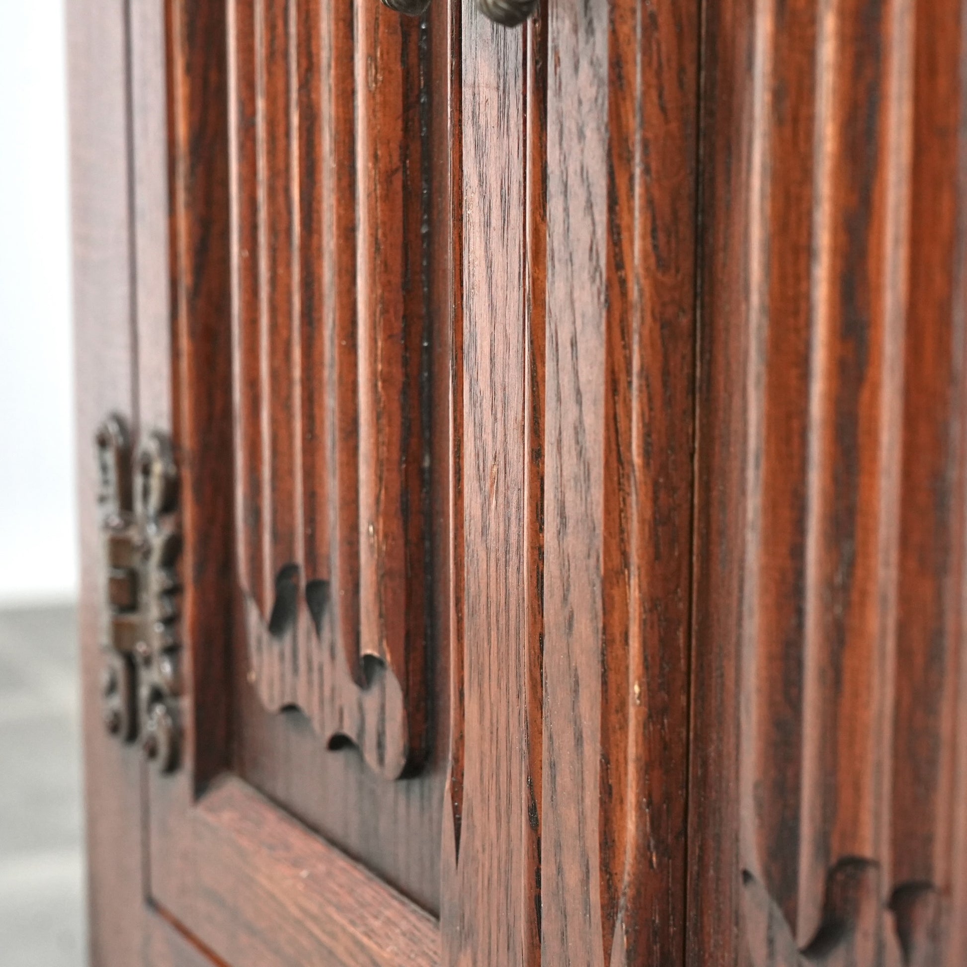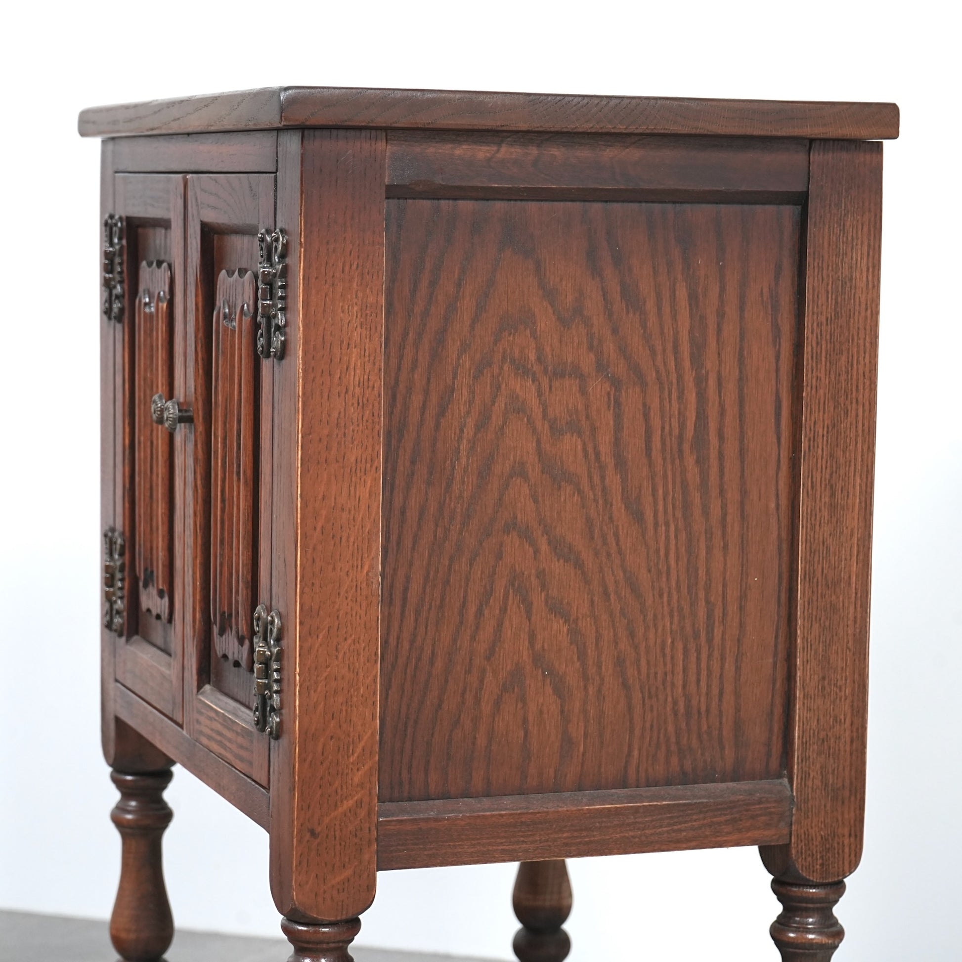 伝統的な様式を忠実に再現して仕上げられており、重厚なオーク材の質感や、リネンフォールドや挽物細工など、随所に手作業で施された丁寧な作り込みが光ります。