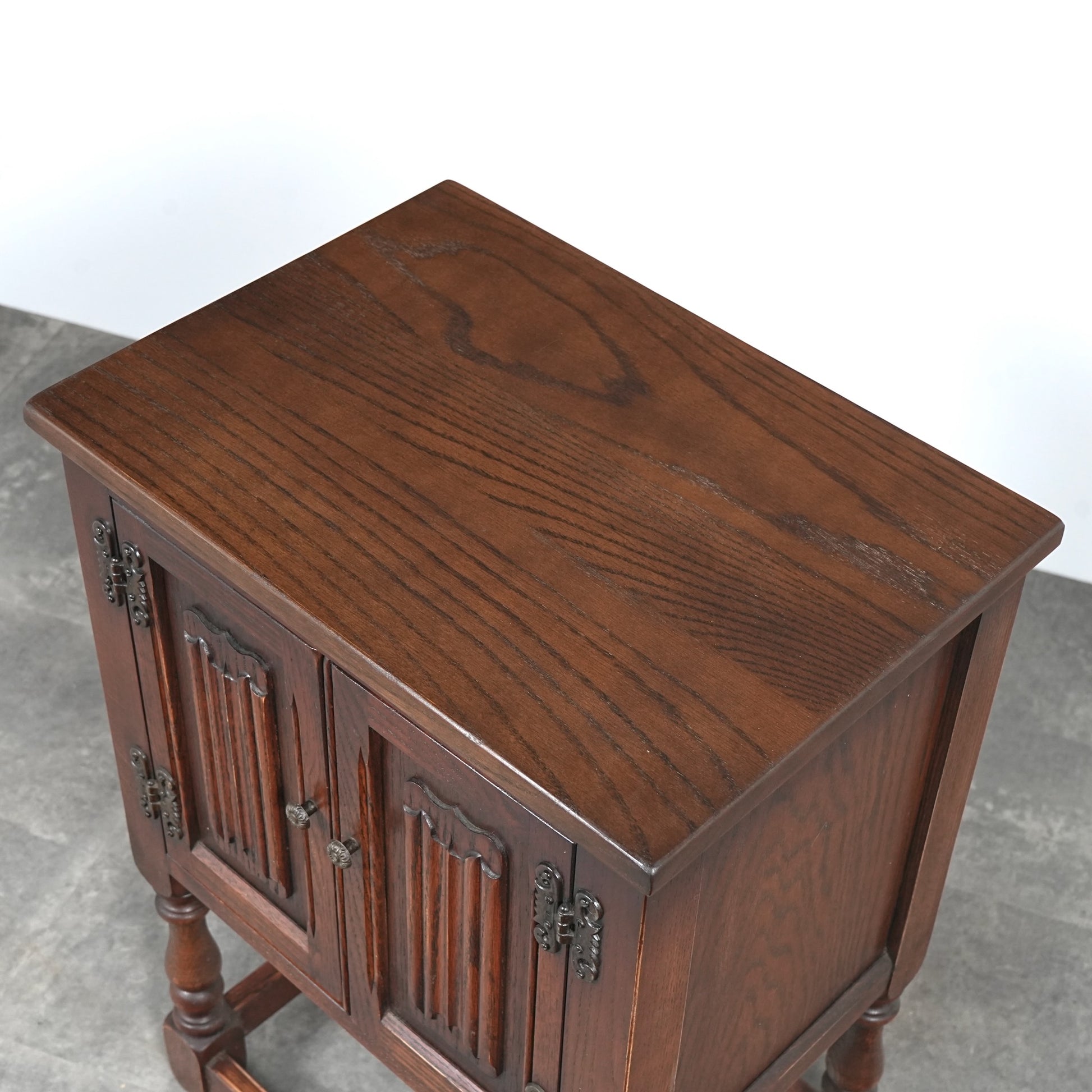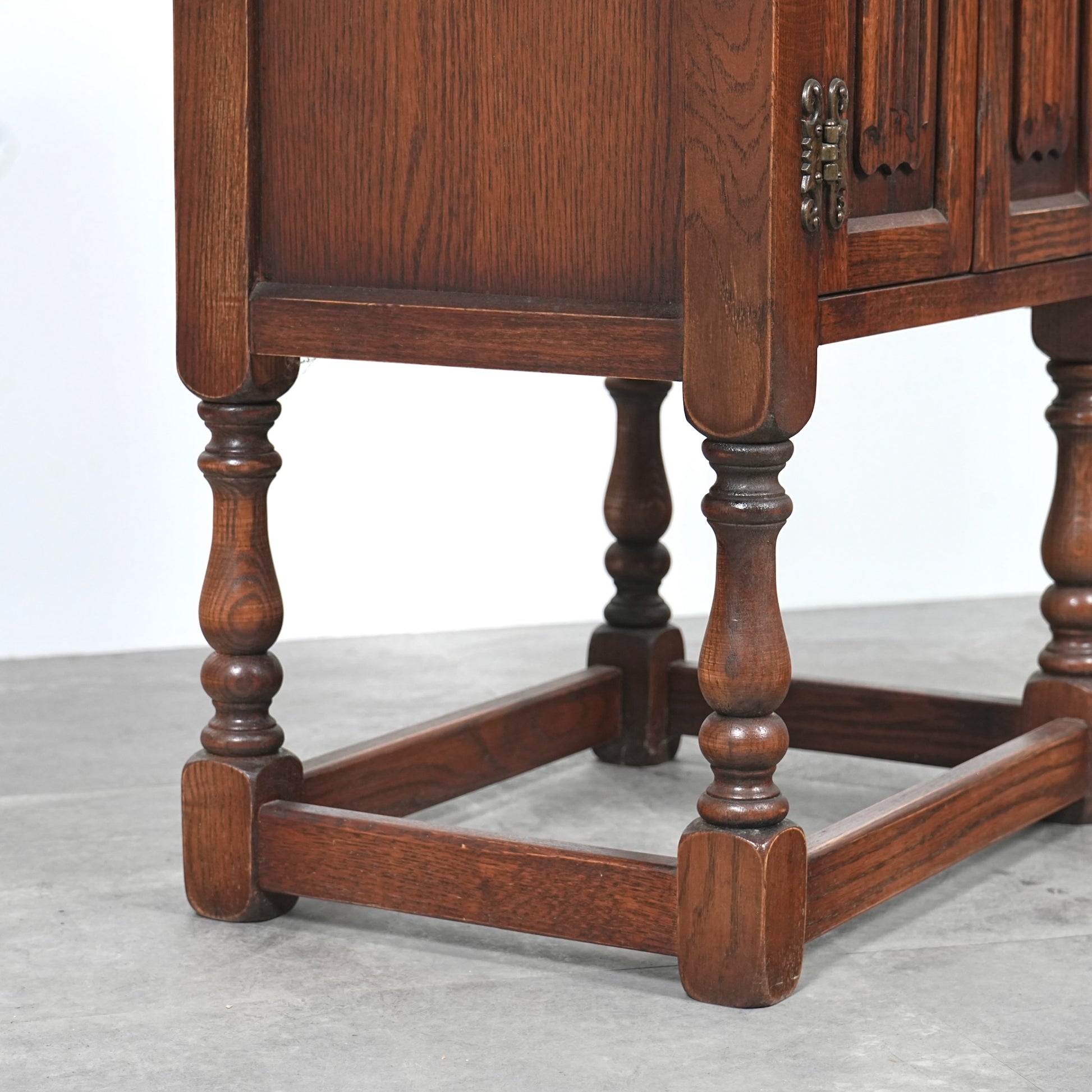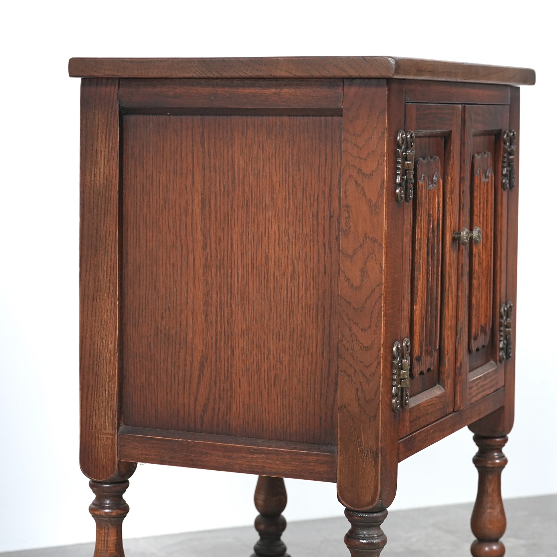 伝統的な様式を忠実に再現して仕上げられており、重厚なオーク材の質感や、リネンフォールドや挽物細工など、随所に手作業で施された丁寧な作り込みが光ります。